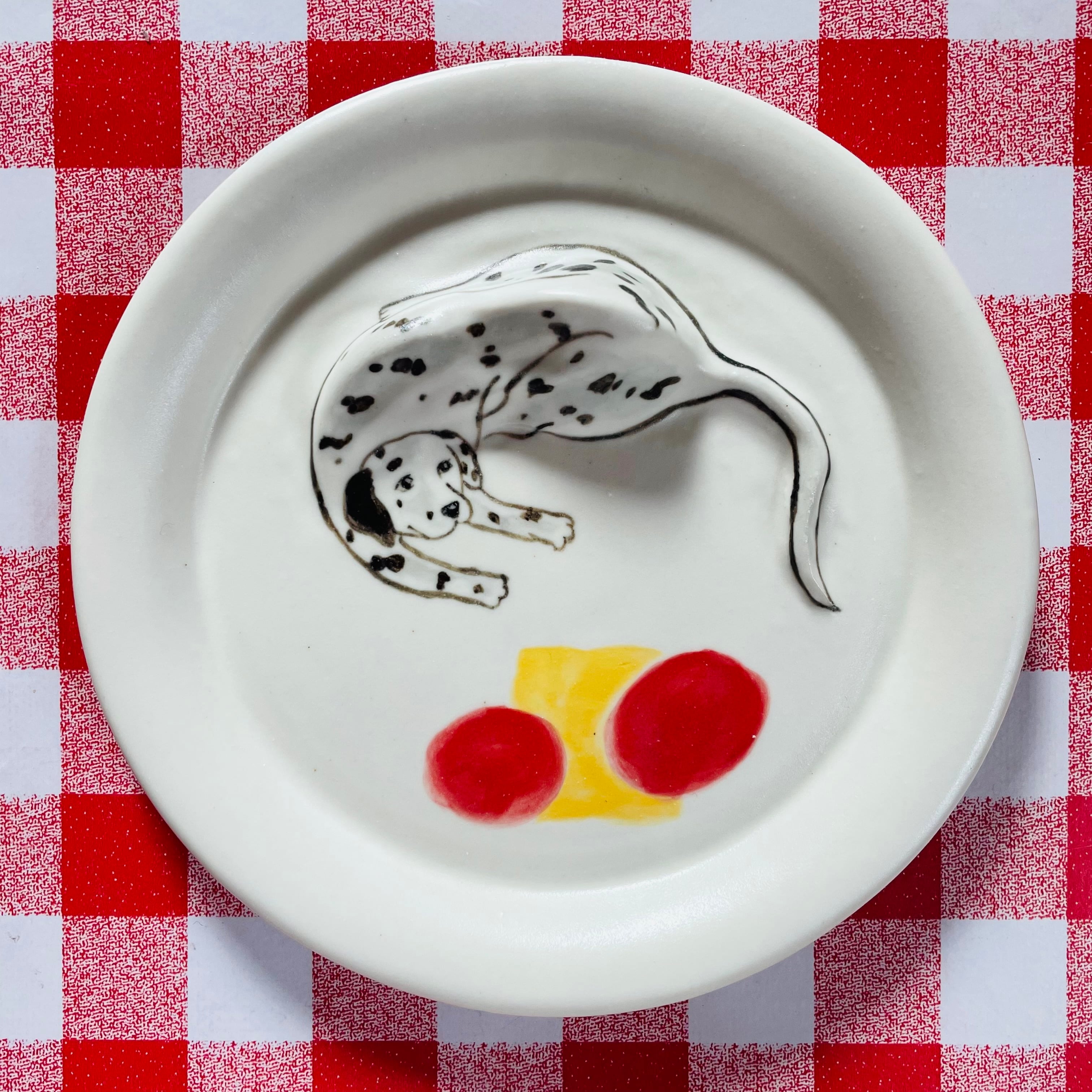 片上亜季 絵から少し出てる犬のお皿 アメリカンコッカスパニエル・ダルメシアン