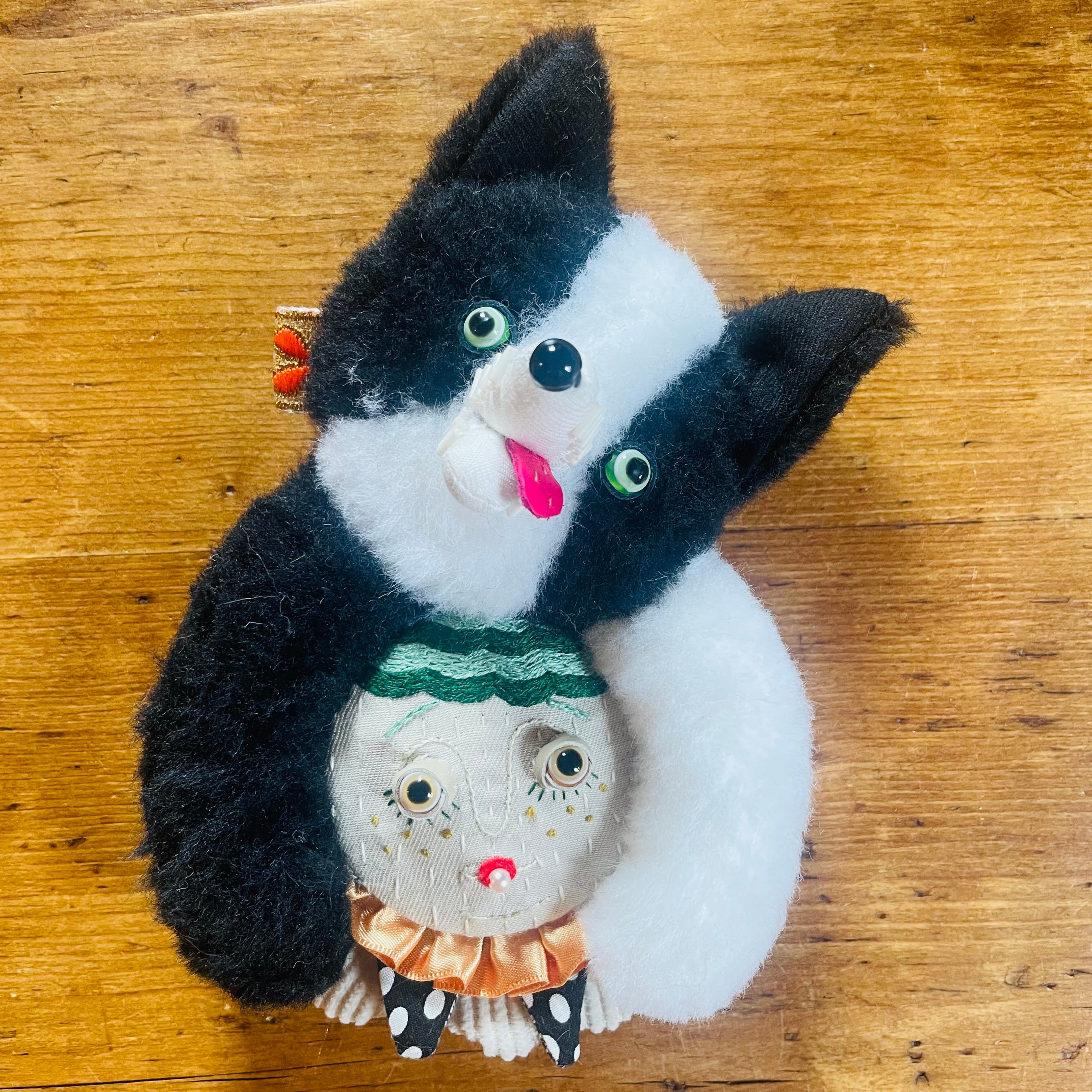 刺繍とアップリケyol ブローチ「ボーダーかぶり好敵手」