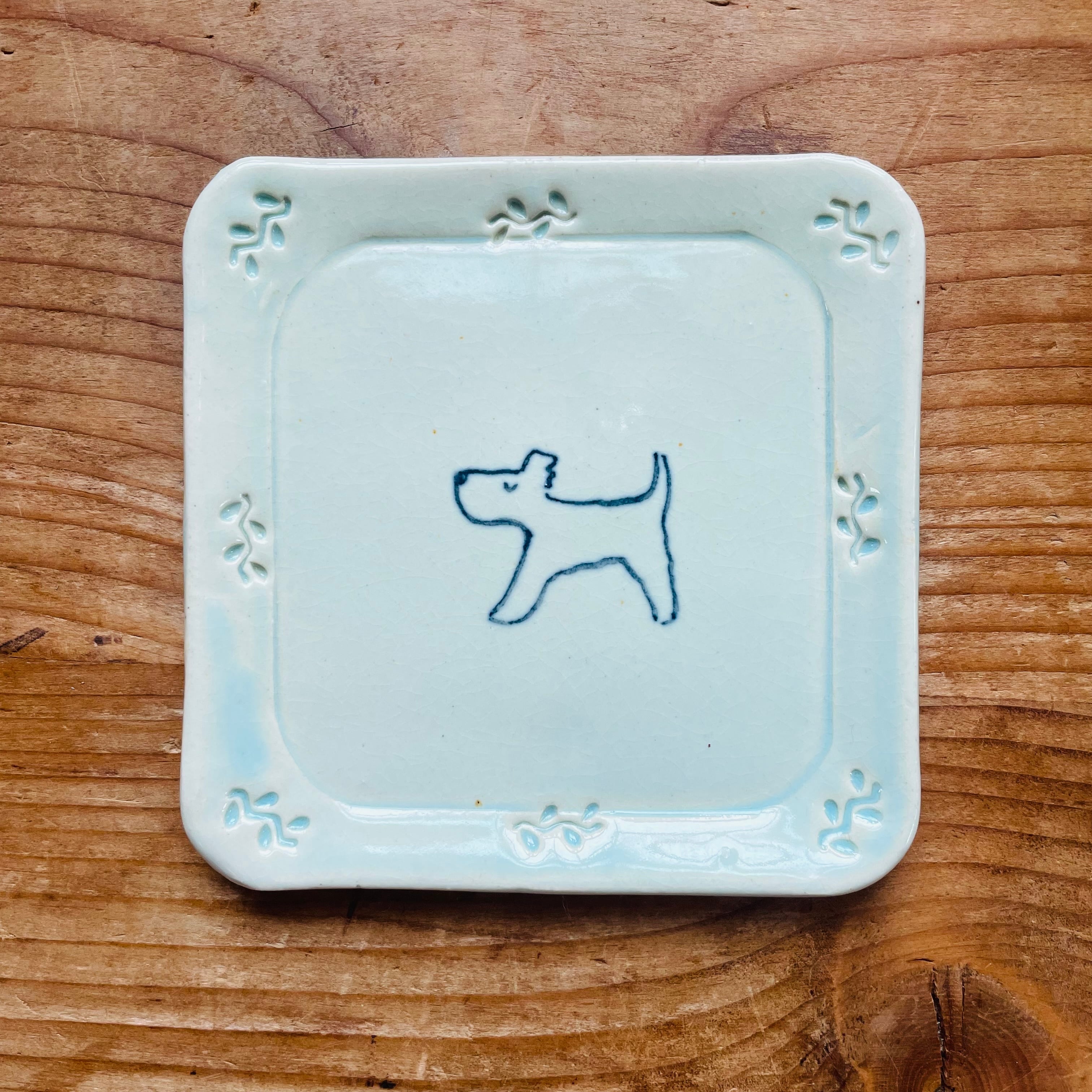 中央にテリア・シュナウザーが描かれた小さな角皿