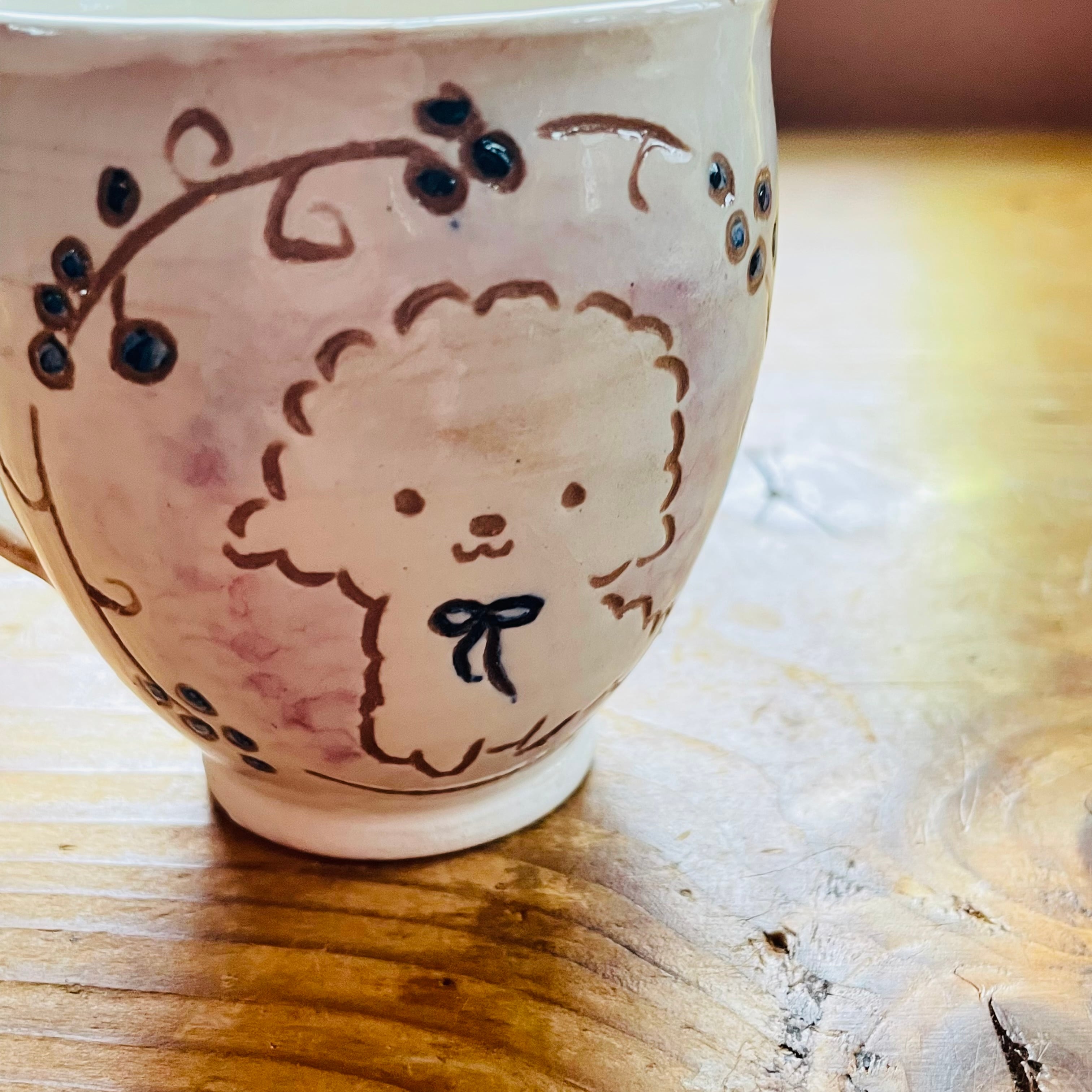 ふわふわ・モコモコの可愛いワンコが描かれたマグカップ