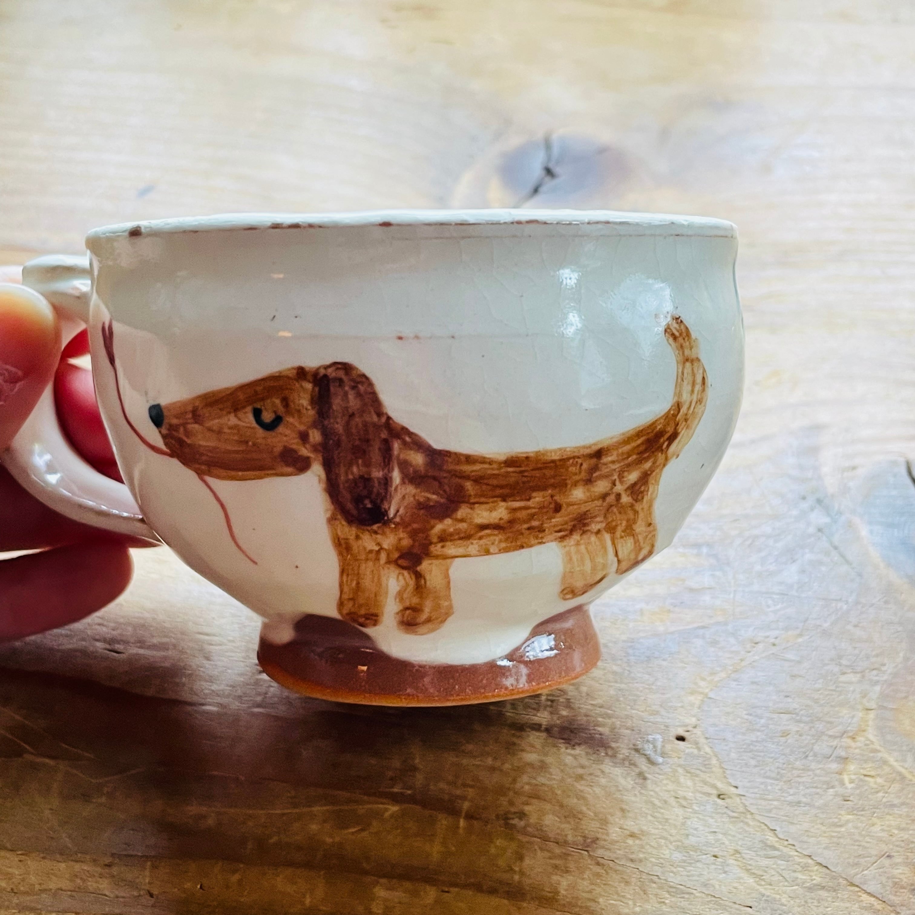 茶色の愛らしいワンコが描かれた小さめのマグカップ