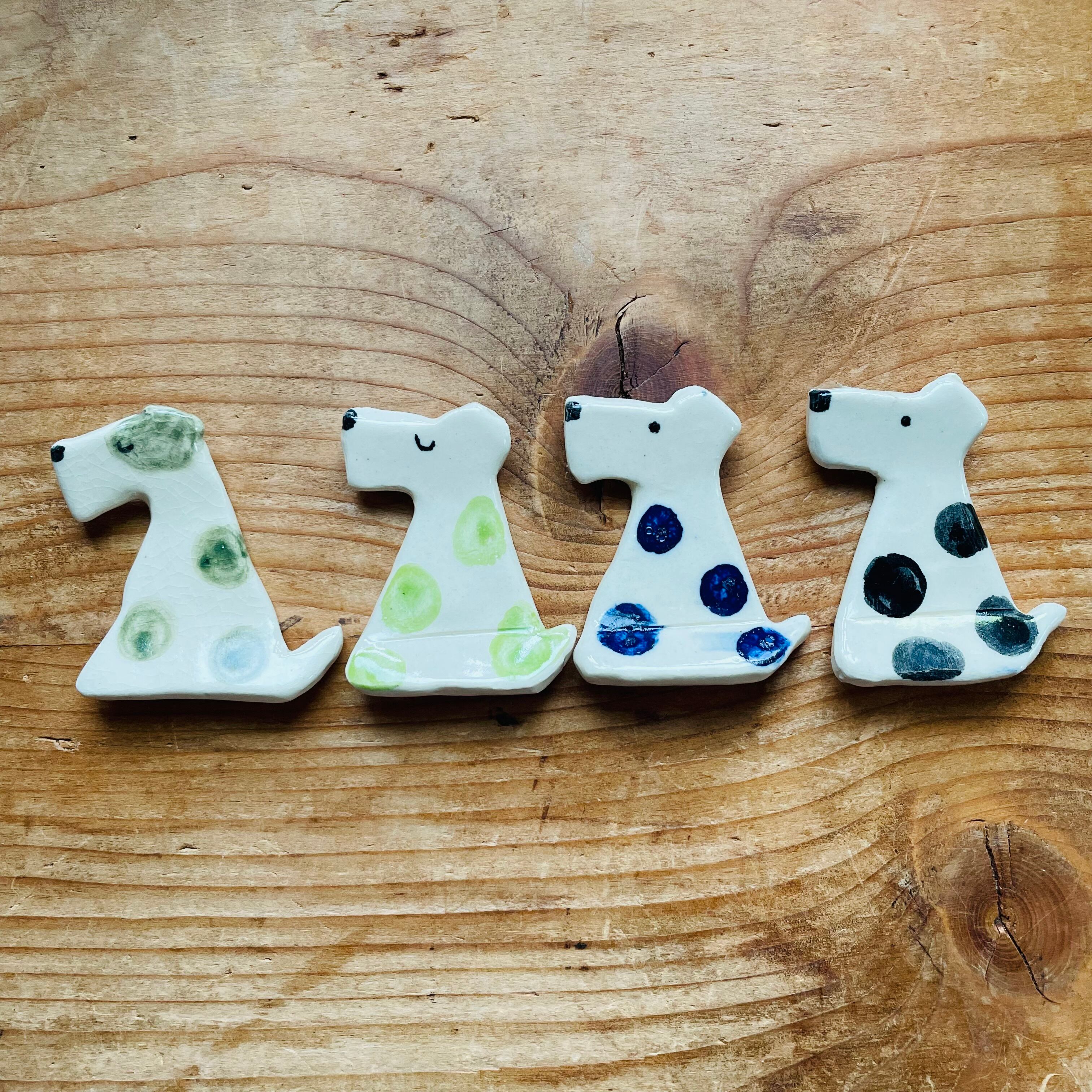 ドット模様と優しい表情に癒される犬のはしおきです。