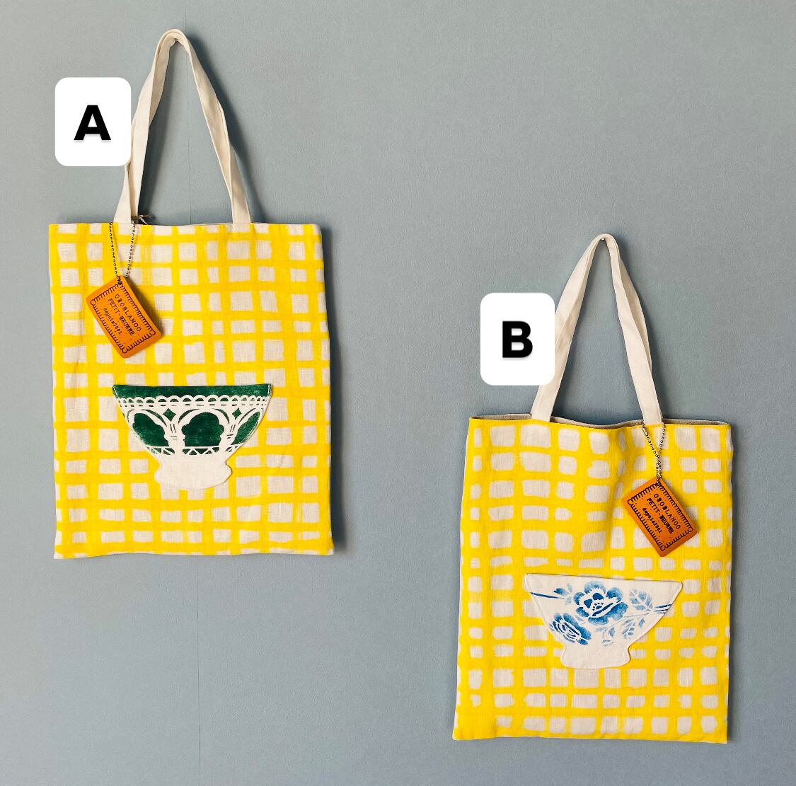 黄色チェックのプチトート