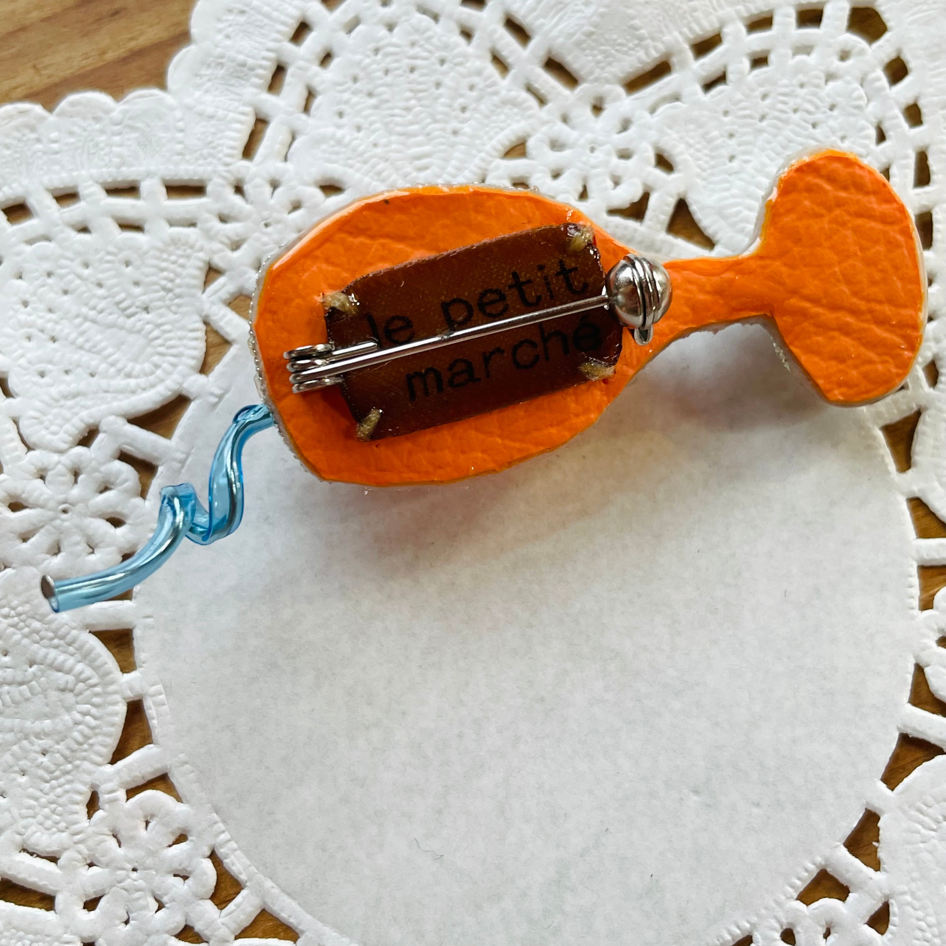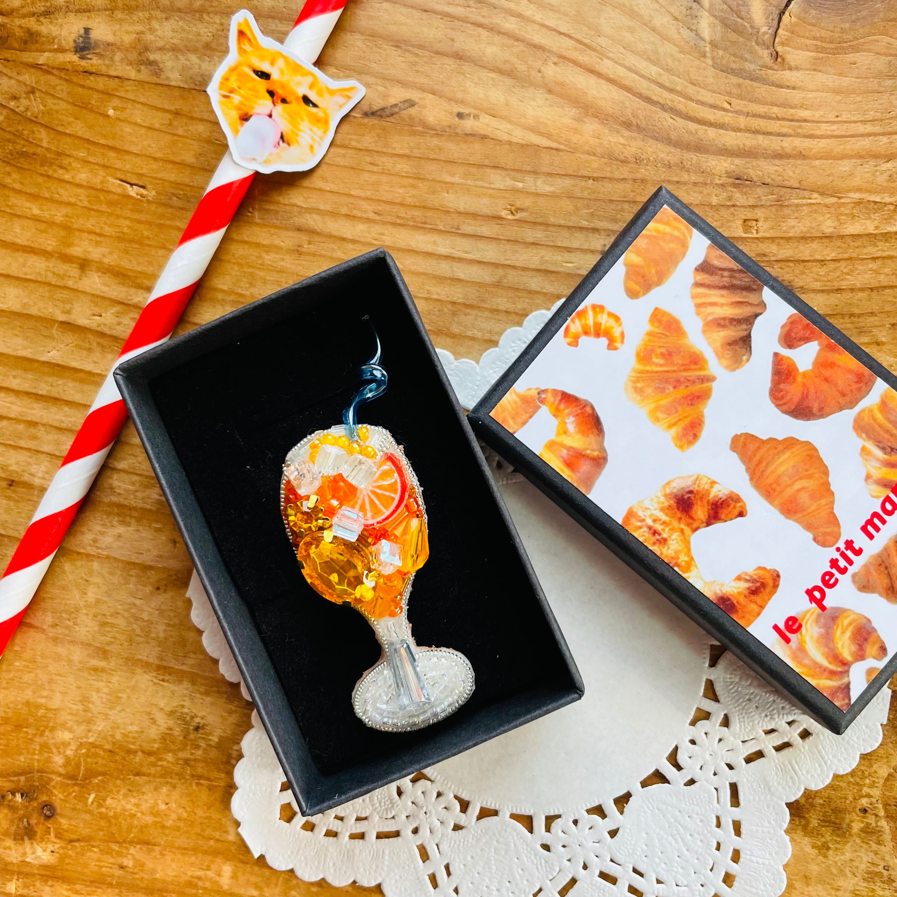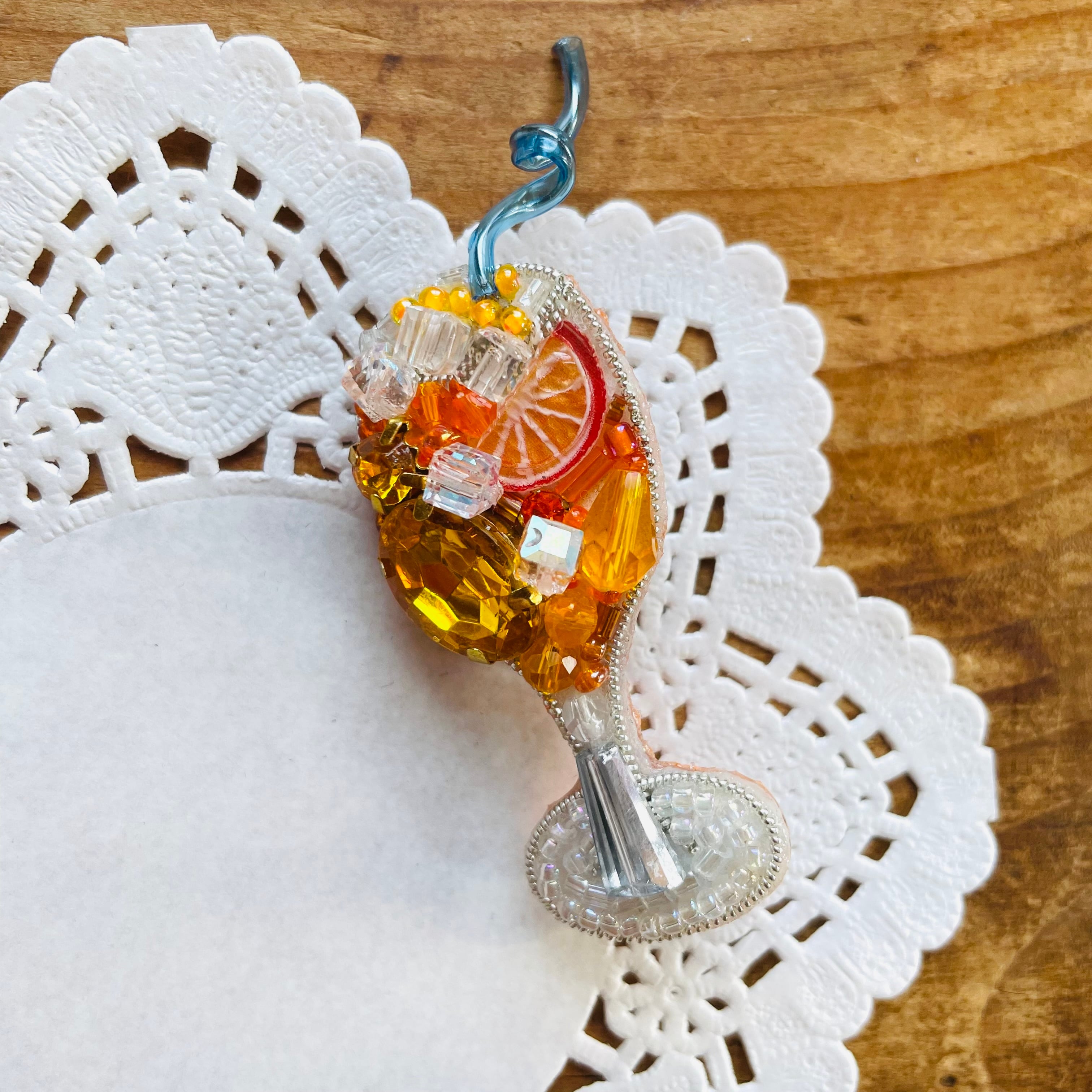 オレンジジュースの爽やかな雰囲気が伝わってくる可愛いブローチ。