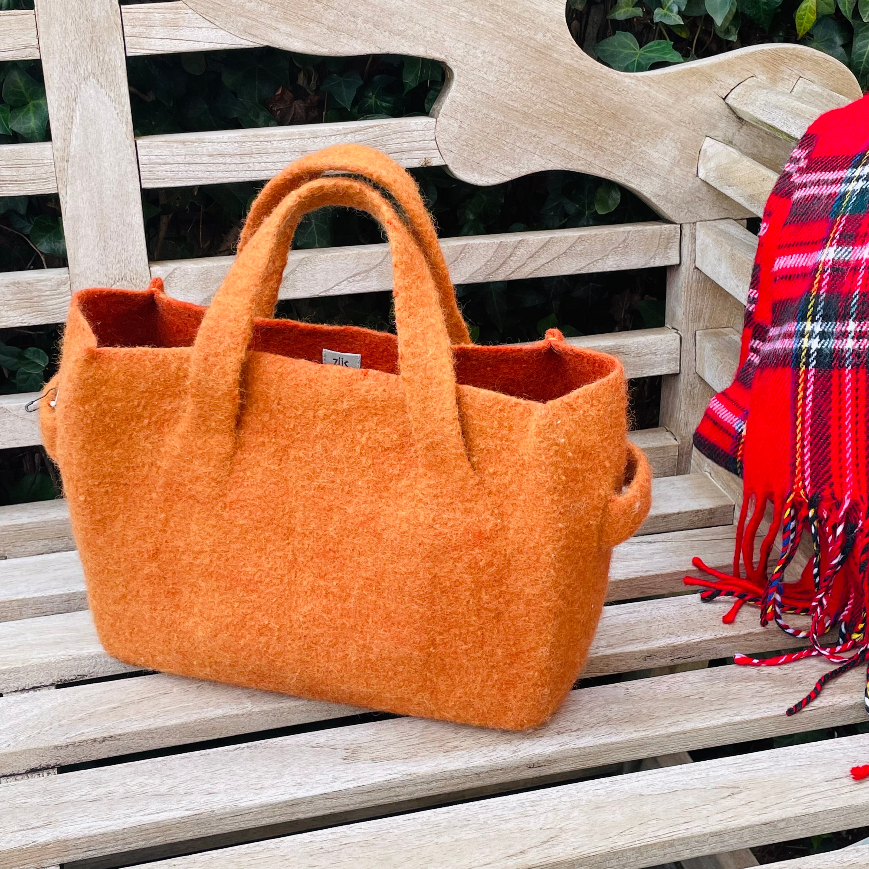 手にとるたびにほっこりあたたかな気持ちになれるオレンジ色のフェルトバック
