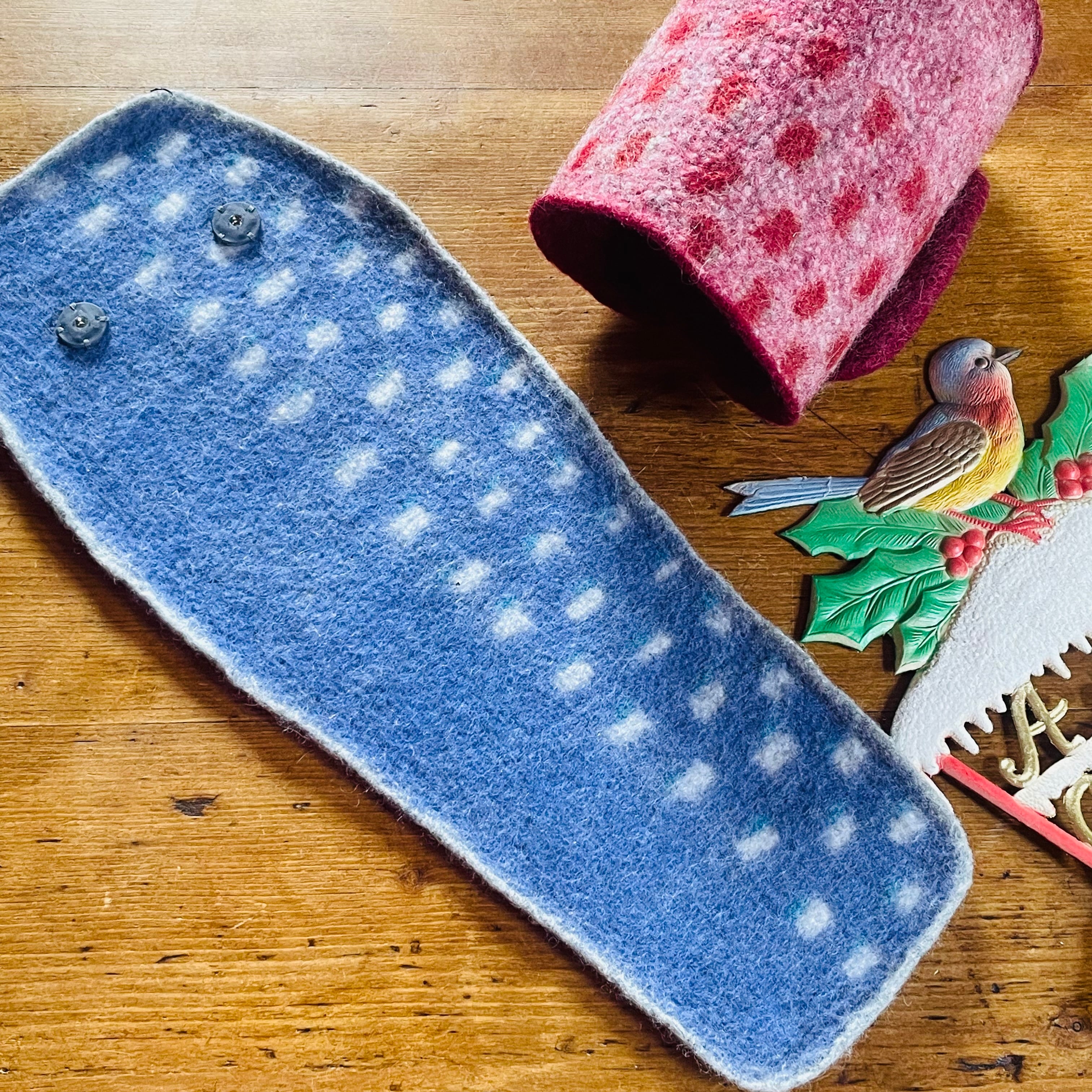 フェルト地でくるっと足首をあたためてくれるレッグウォーマーが届きました。