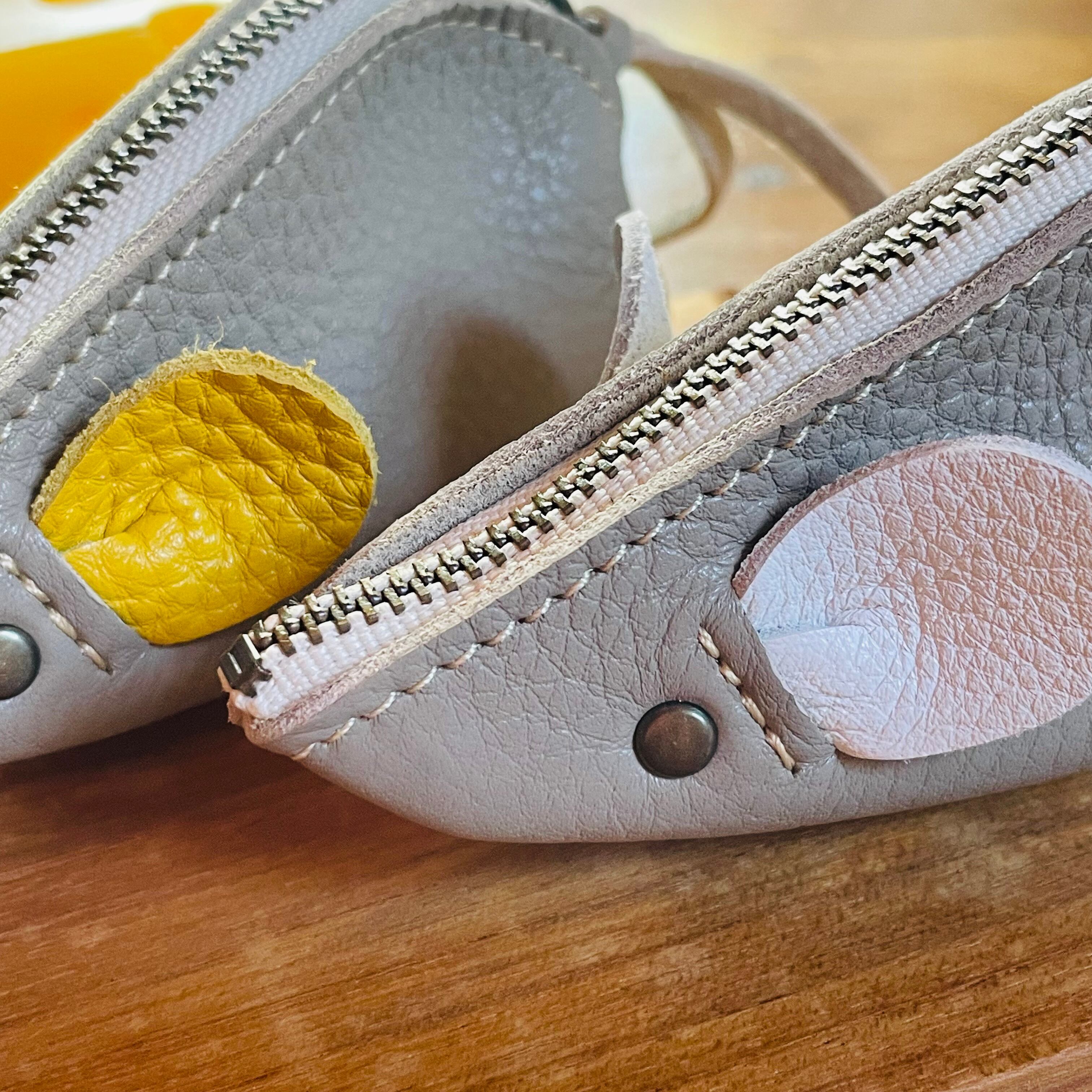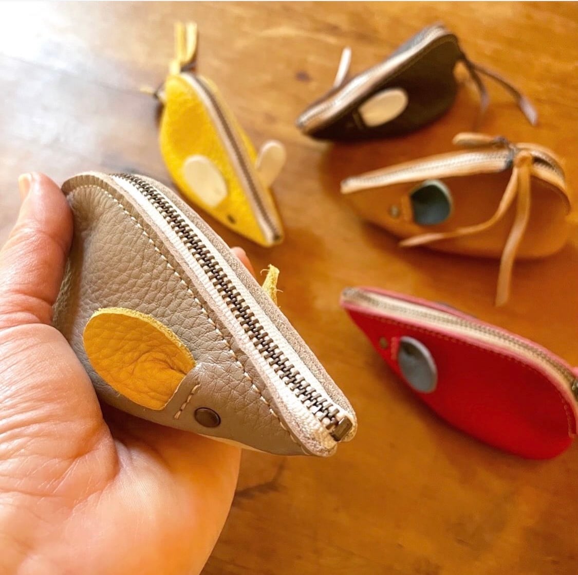 飼われている猫のおもちゃをヒントに制作されたねずみのちいさなポーチ♪