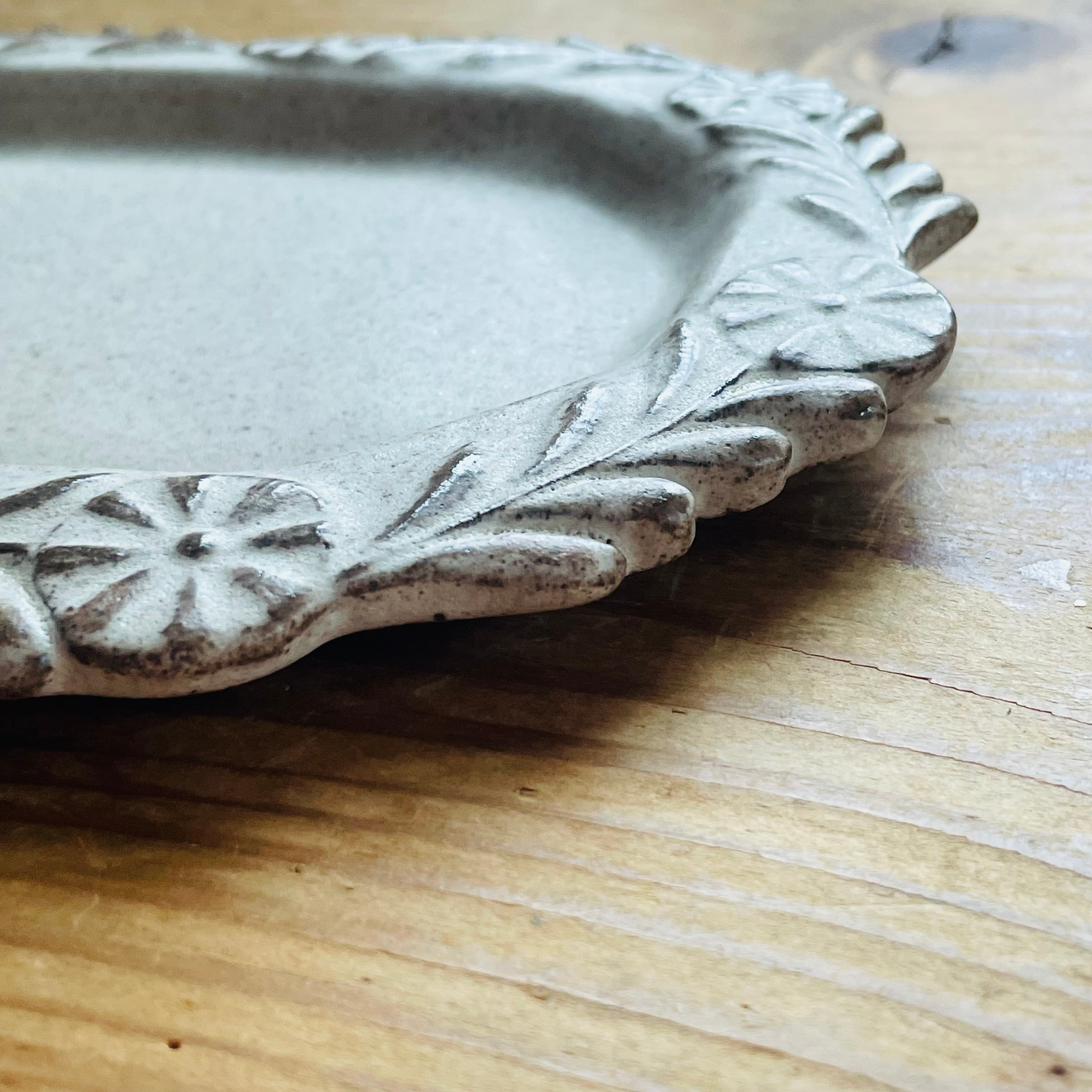 アンティークのような落ち着いたグレージュカラーで