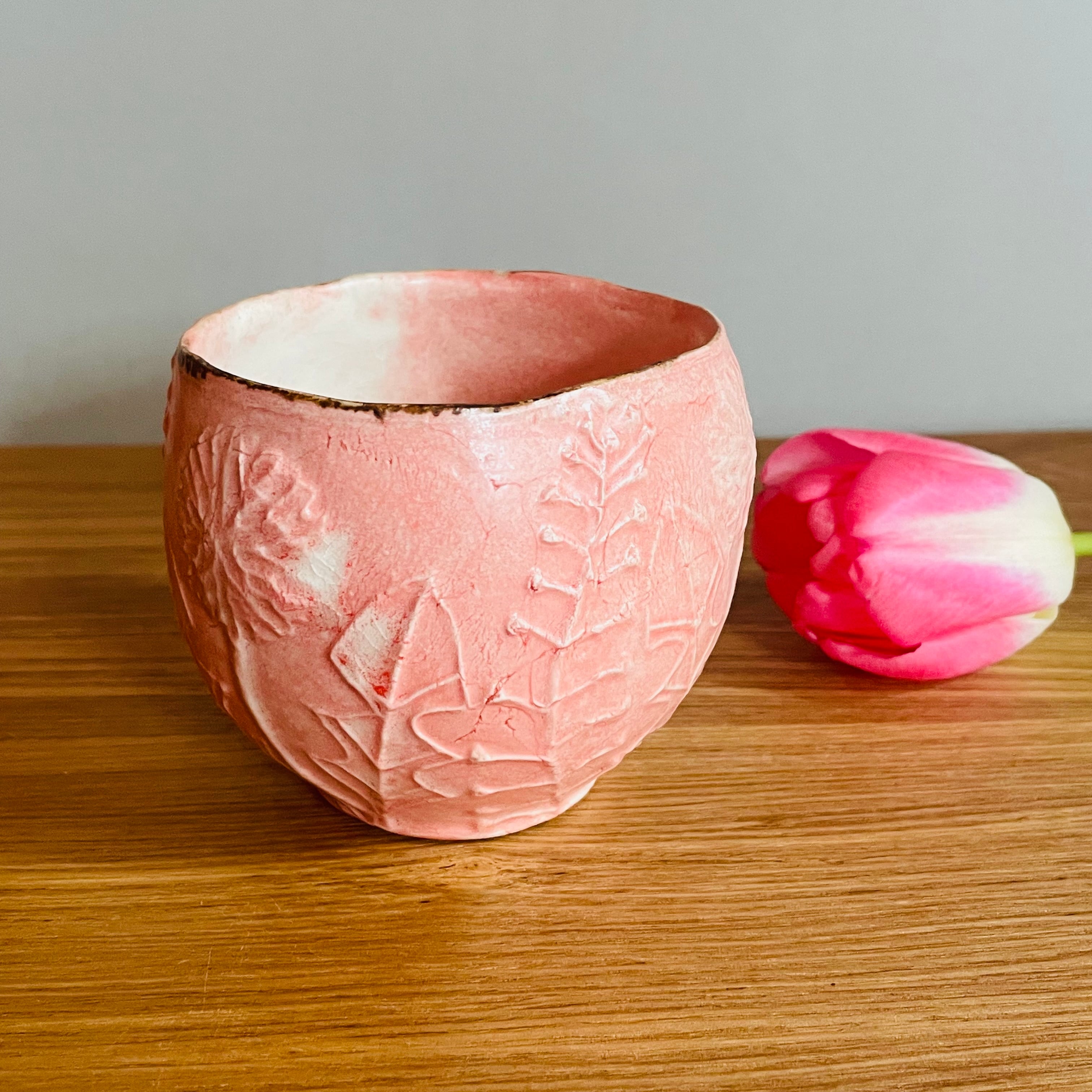 春のあたたかな陽気の中で咲き誇るタンポポがレリーフされたカップ
