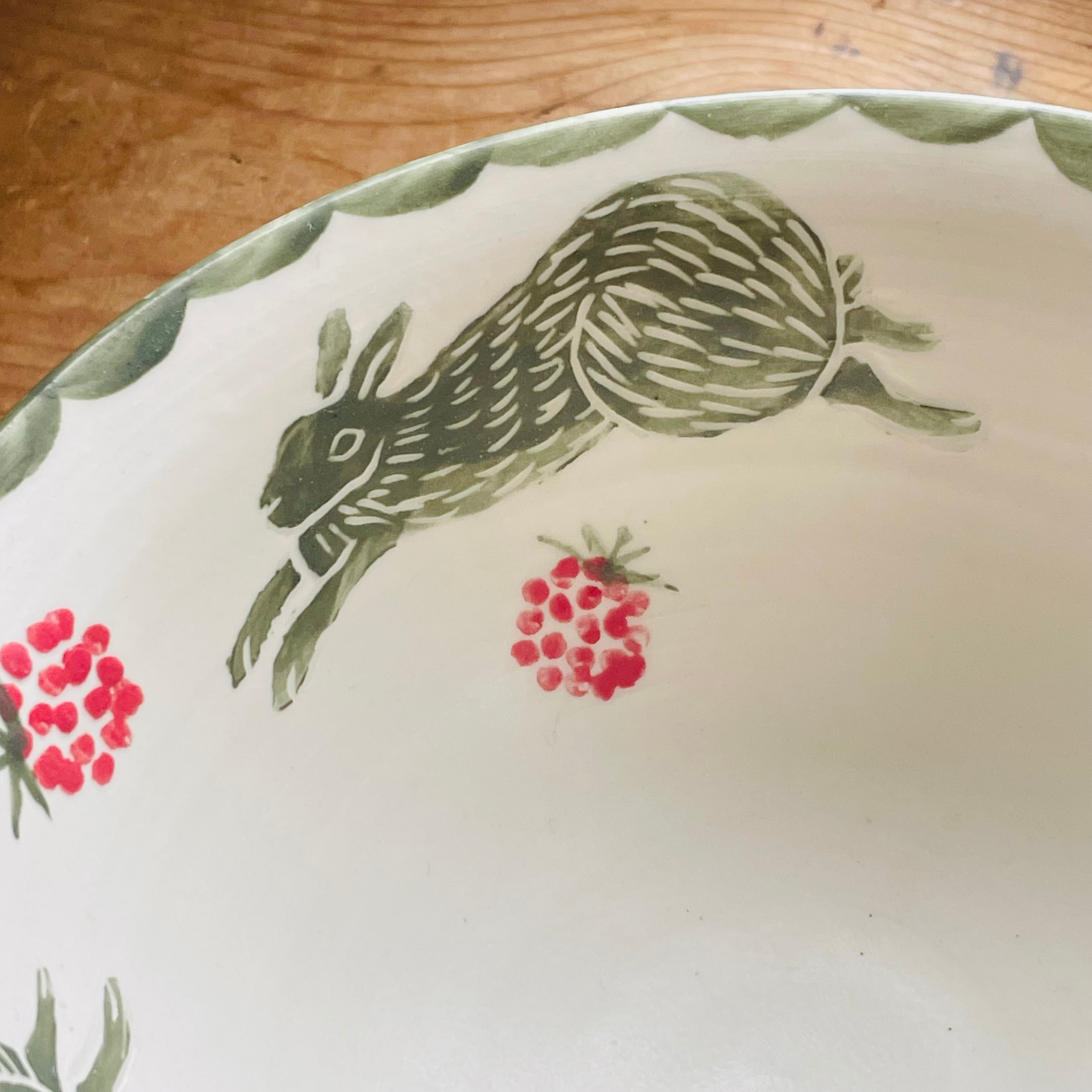 野山を飛び回るうさぎが描かれた大鉢が届きました。