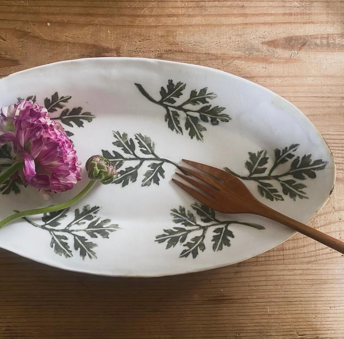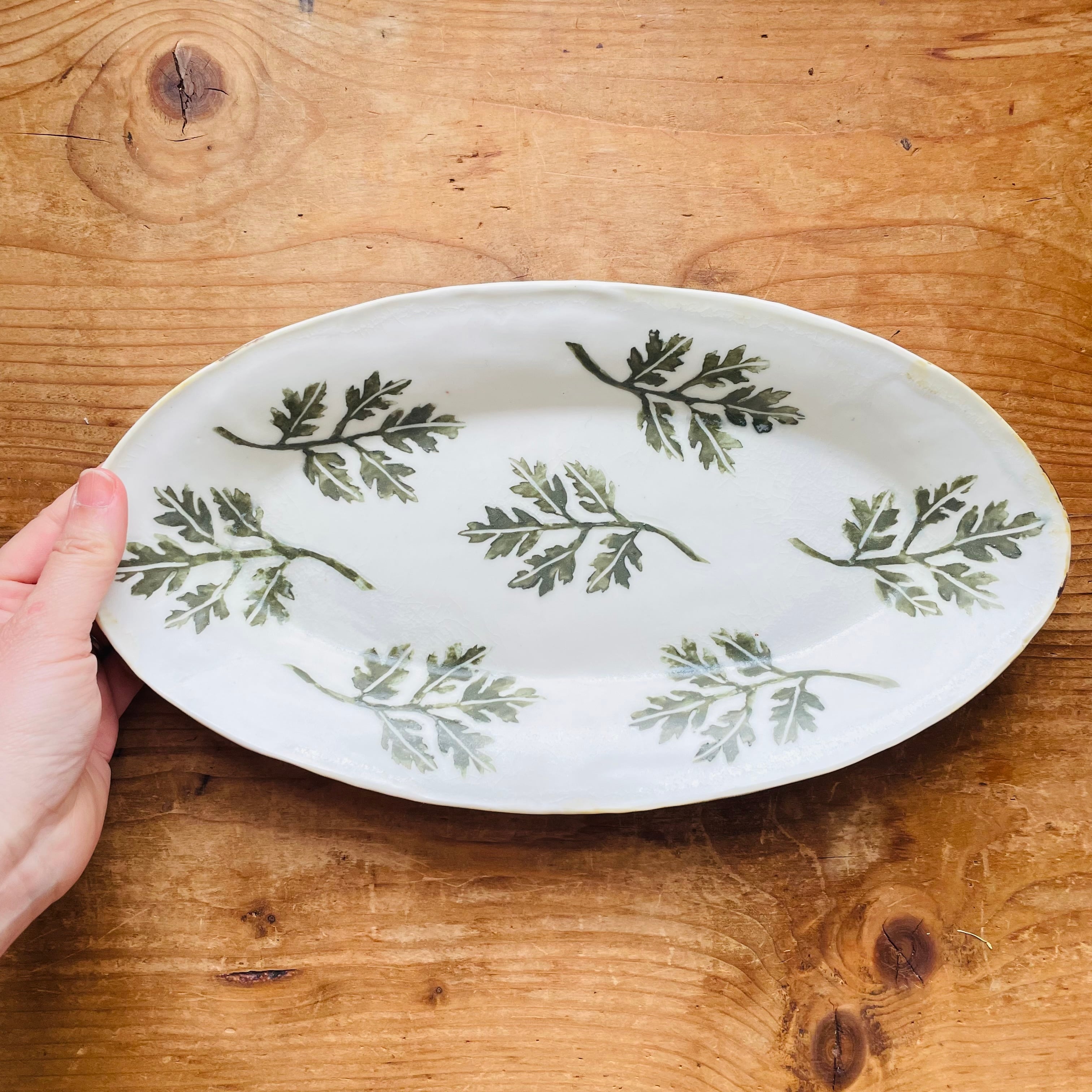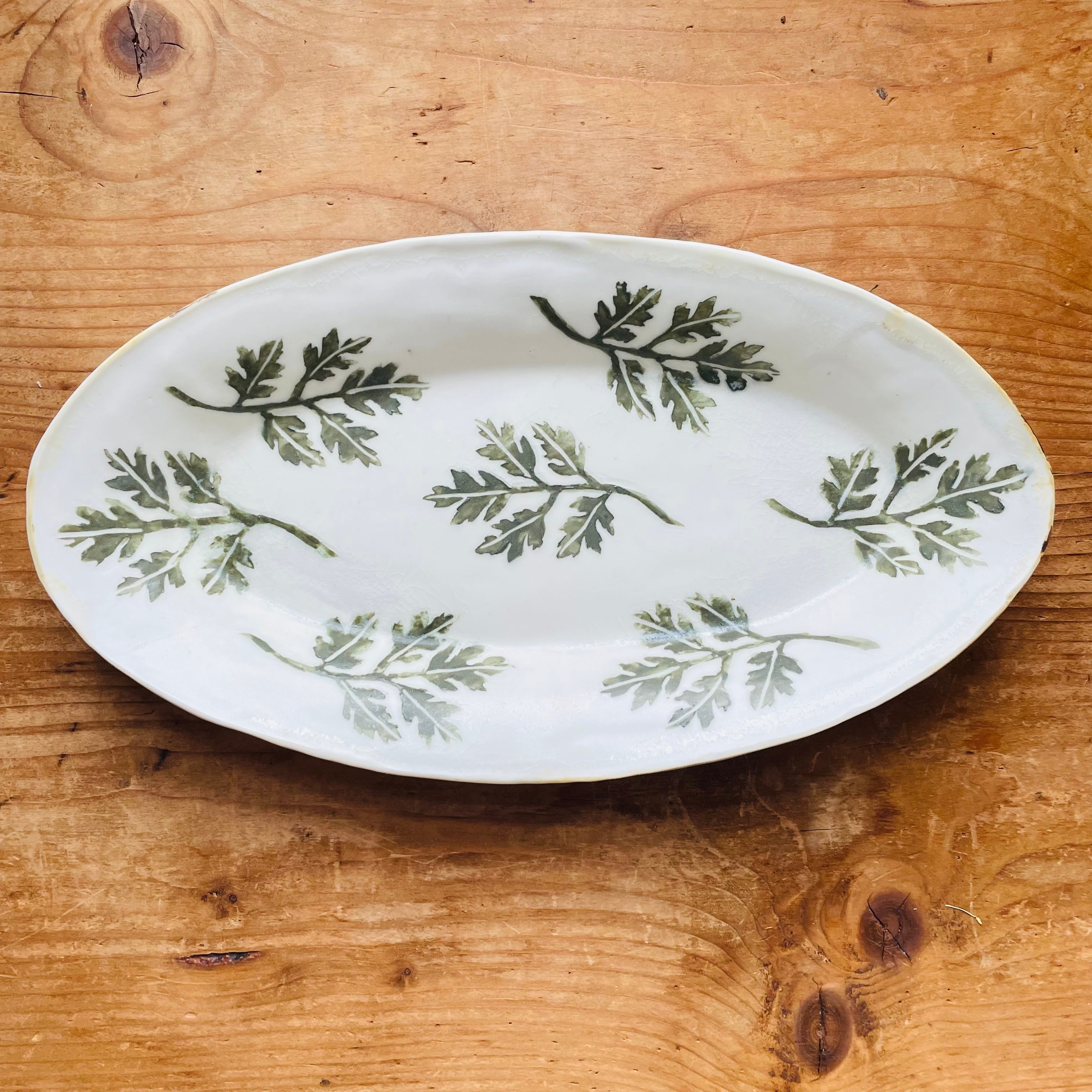 ほっと気持ちが和むよもぎ柄のオーバル皿が届きました。