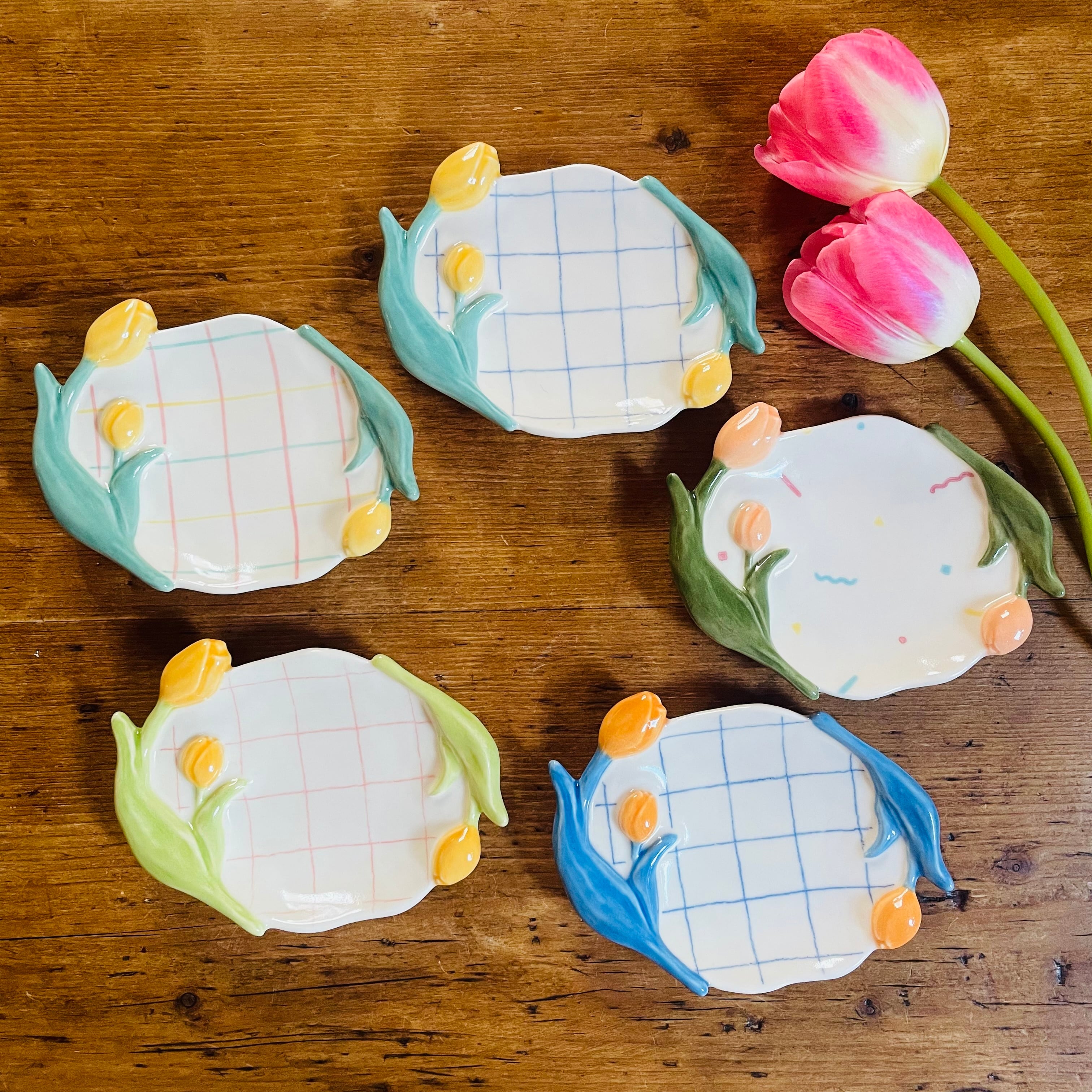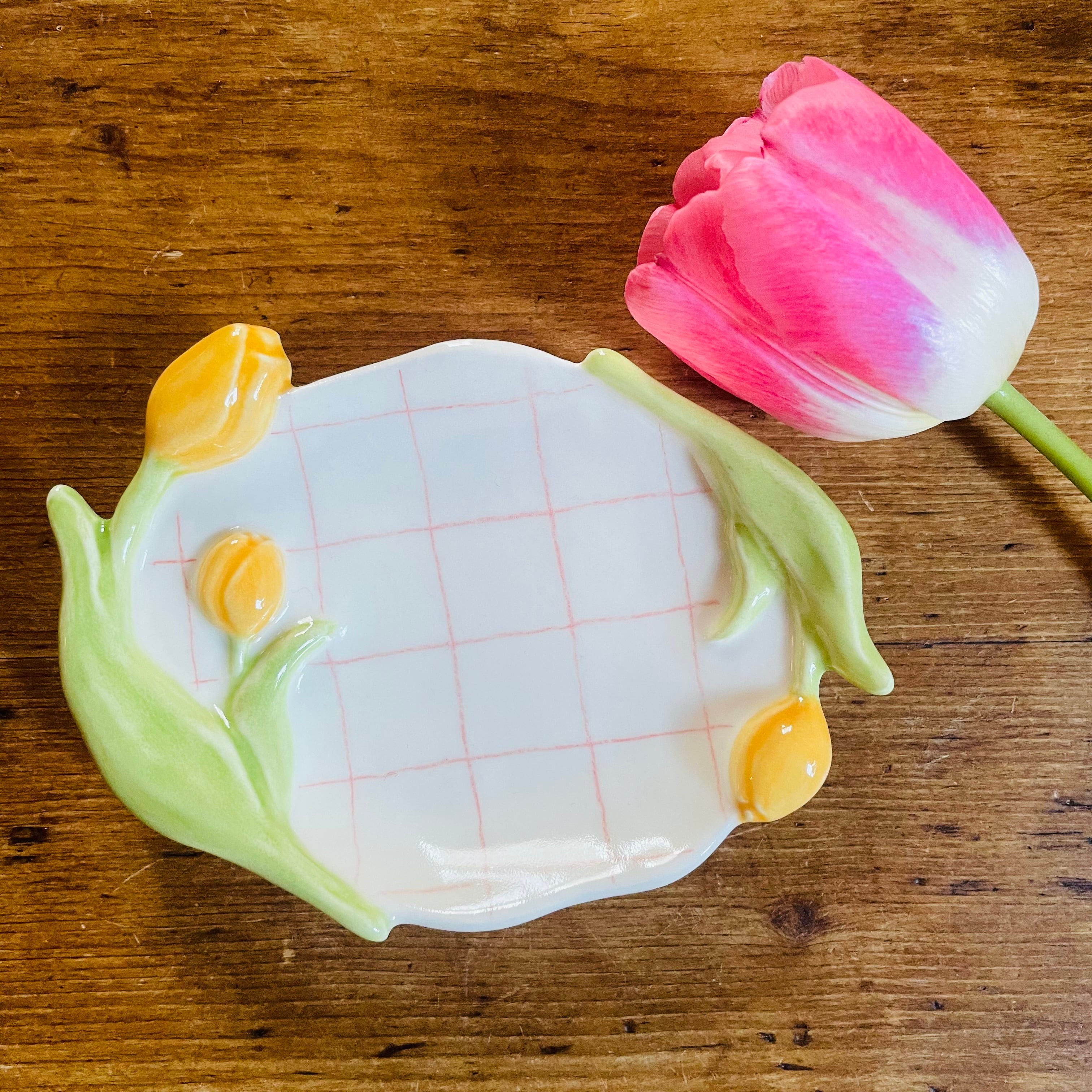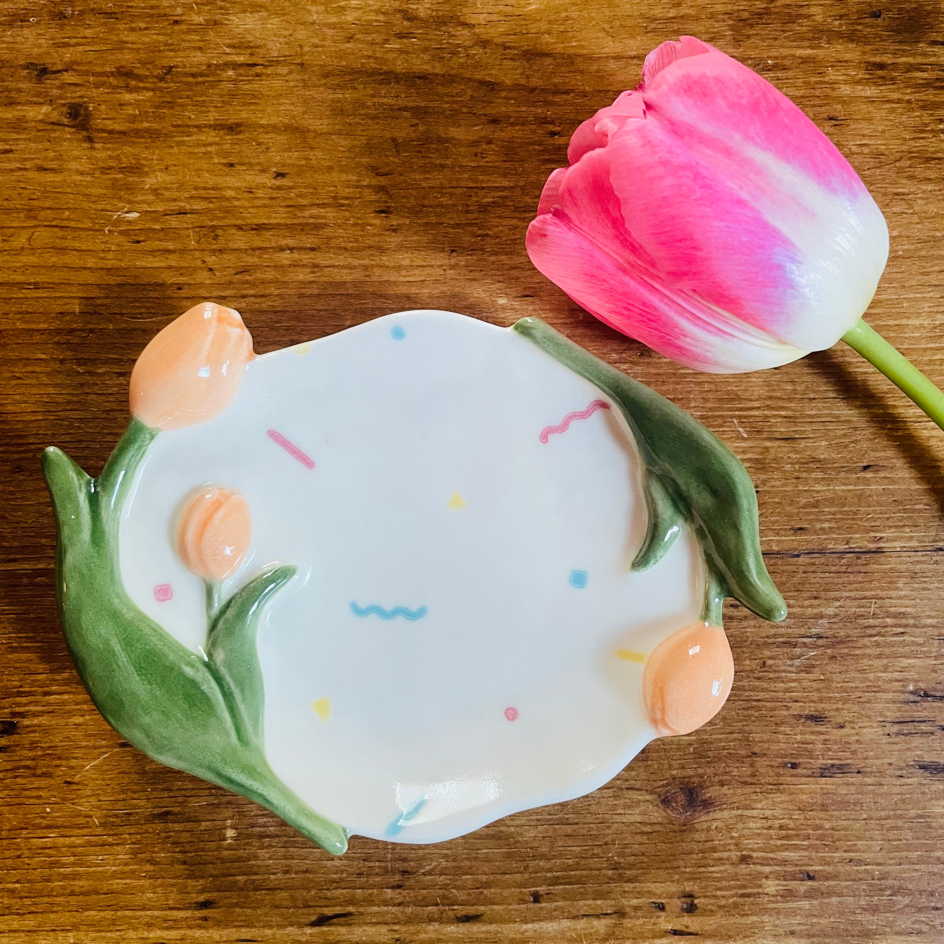 ふっくらと立体的なチューリップのかわいらしい小皿が届きました♪