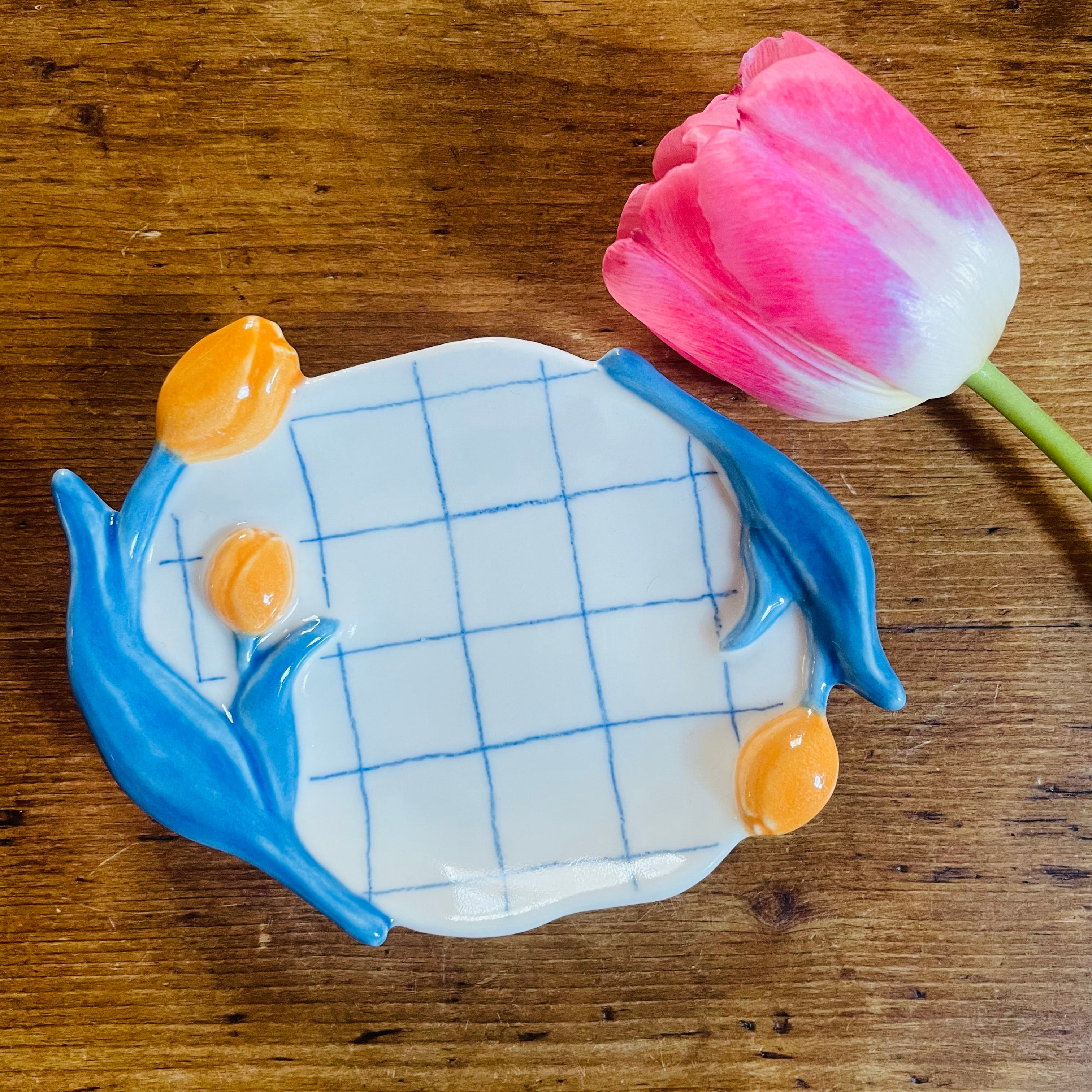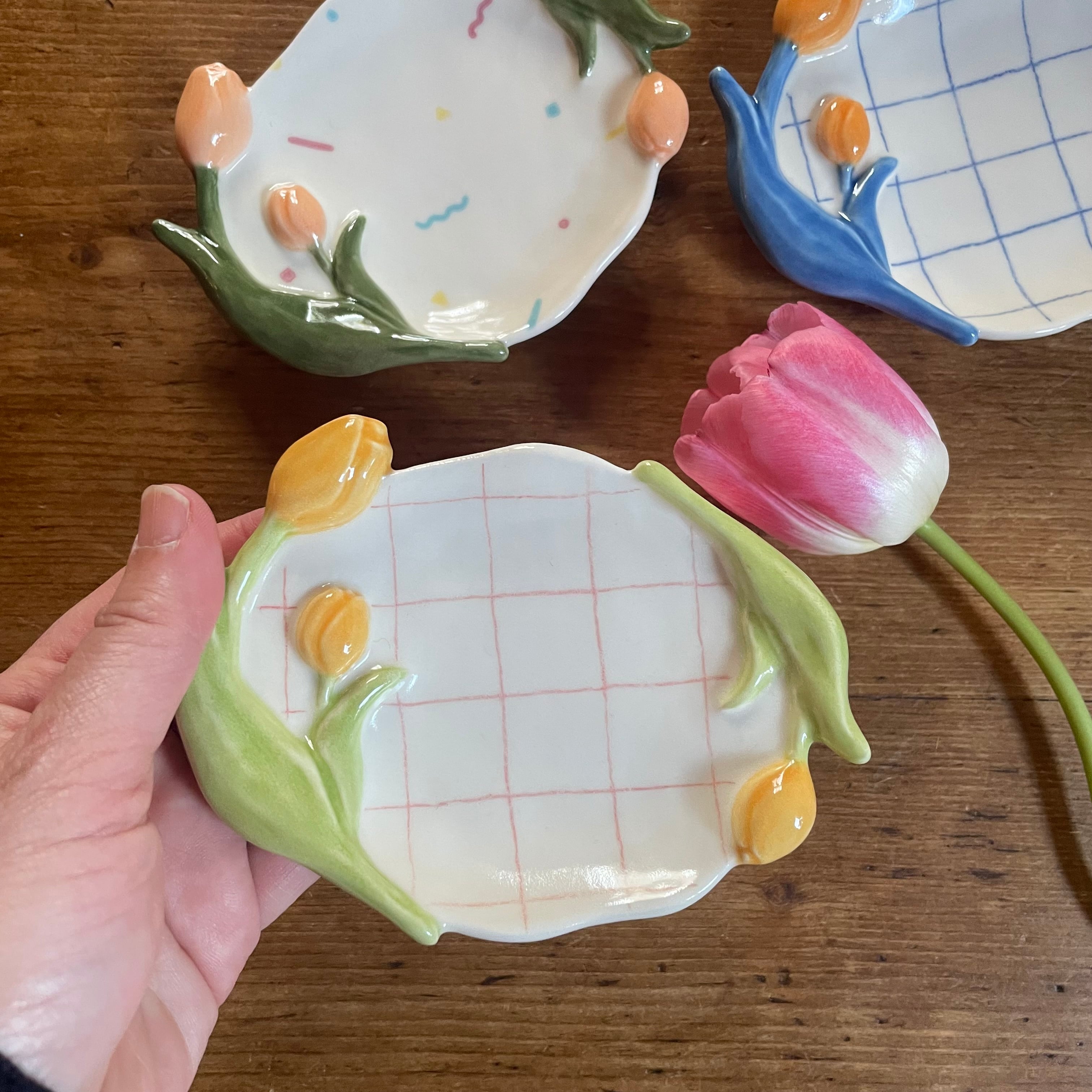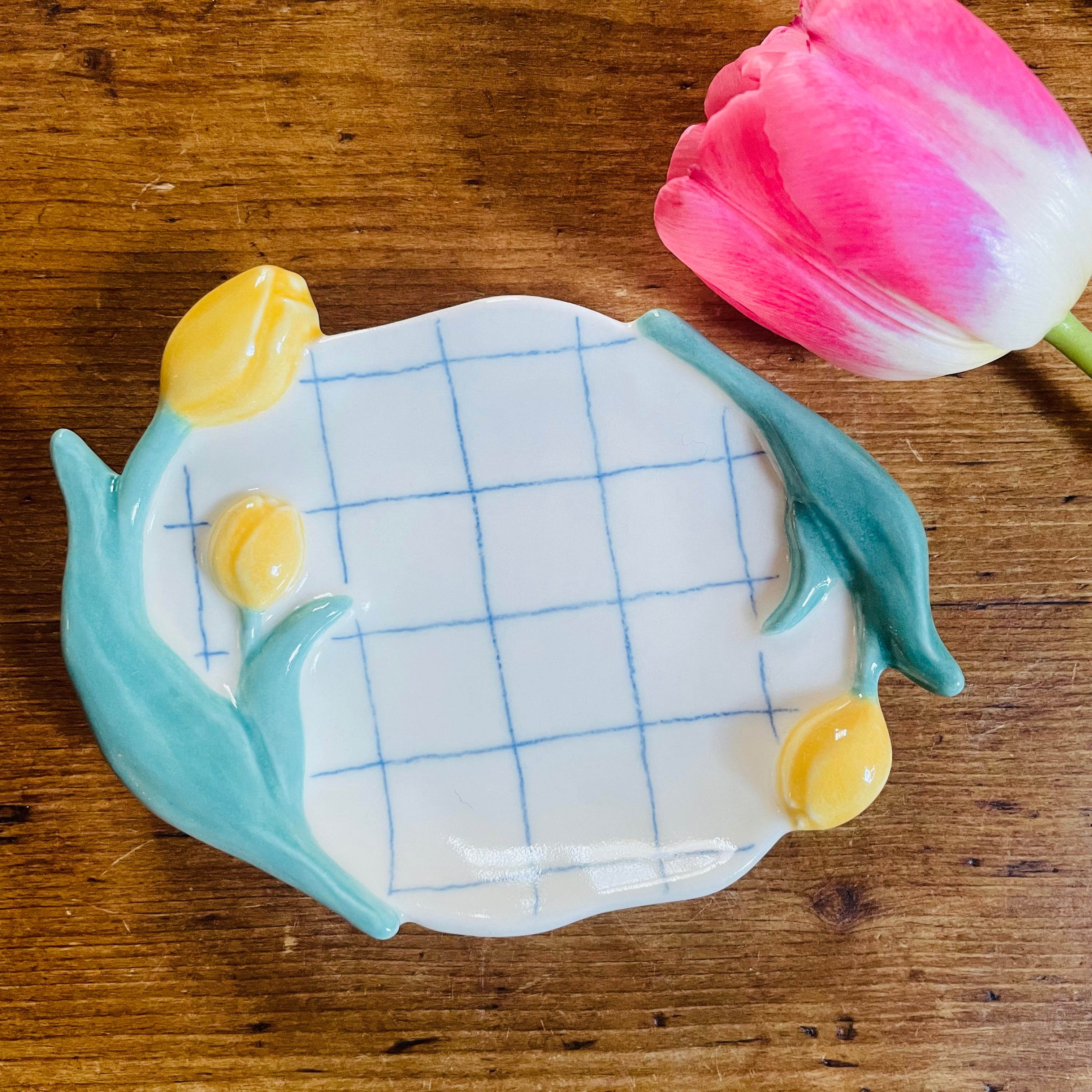 ふっくらと立体的なチューリップのかわいらしい小皿が届きました♪