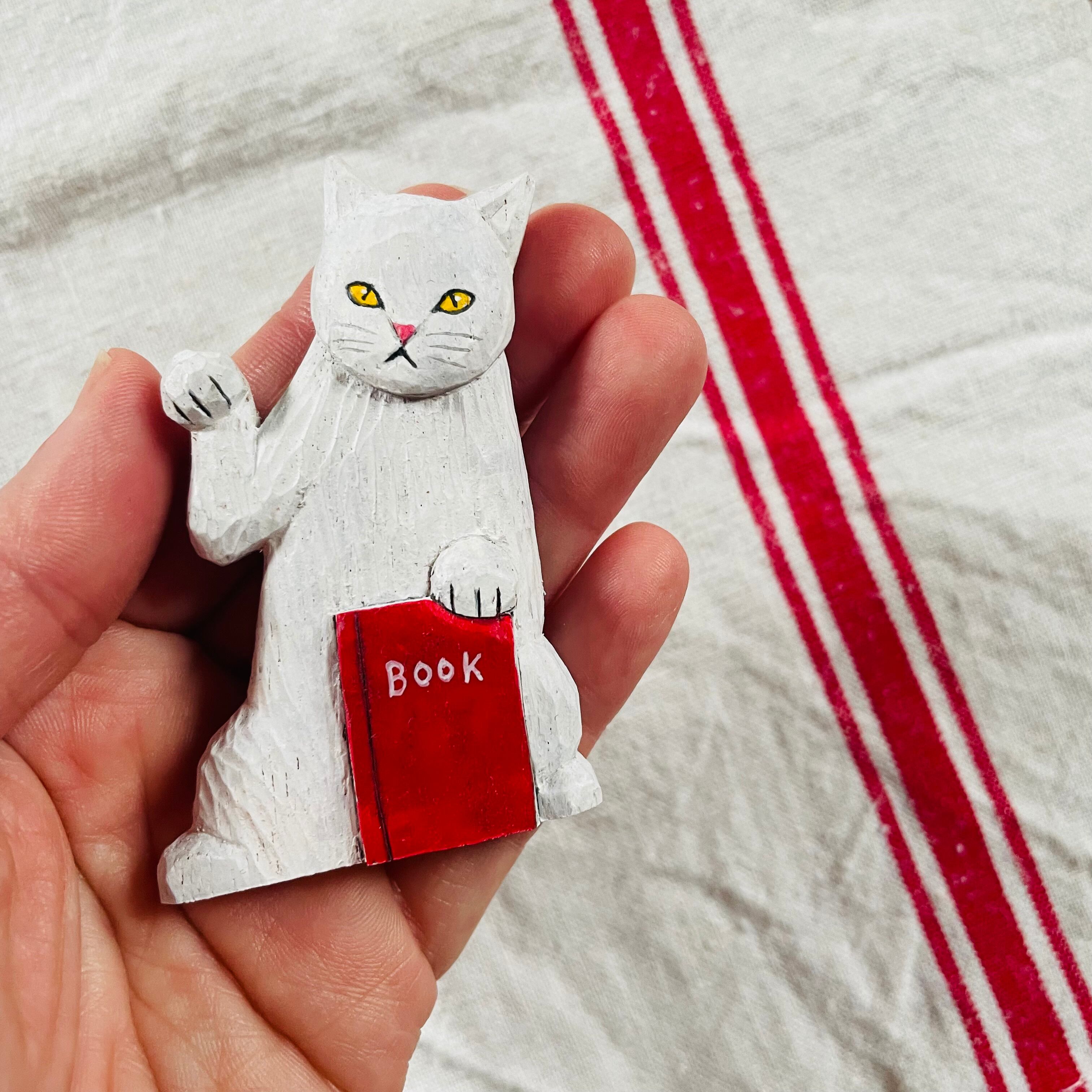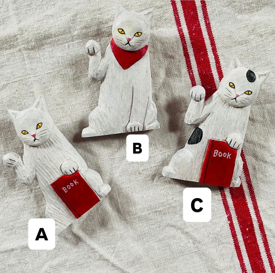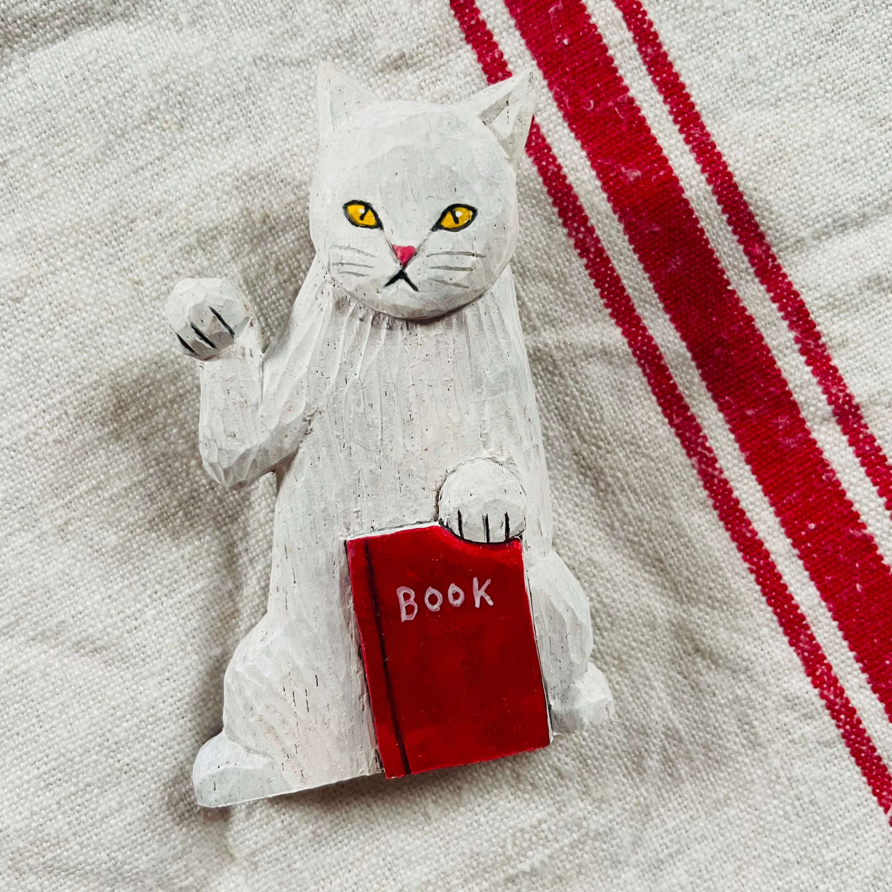 シュールで楽しい木彫りの招き猫ブローチが届きました。