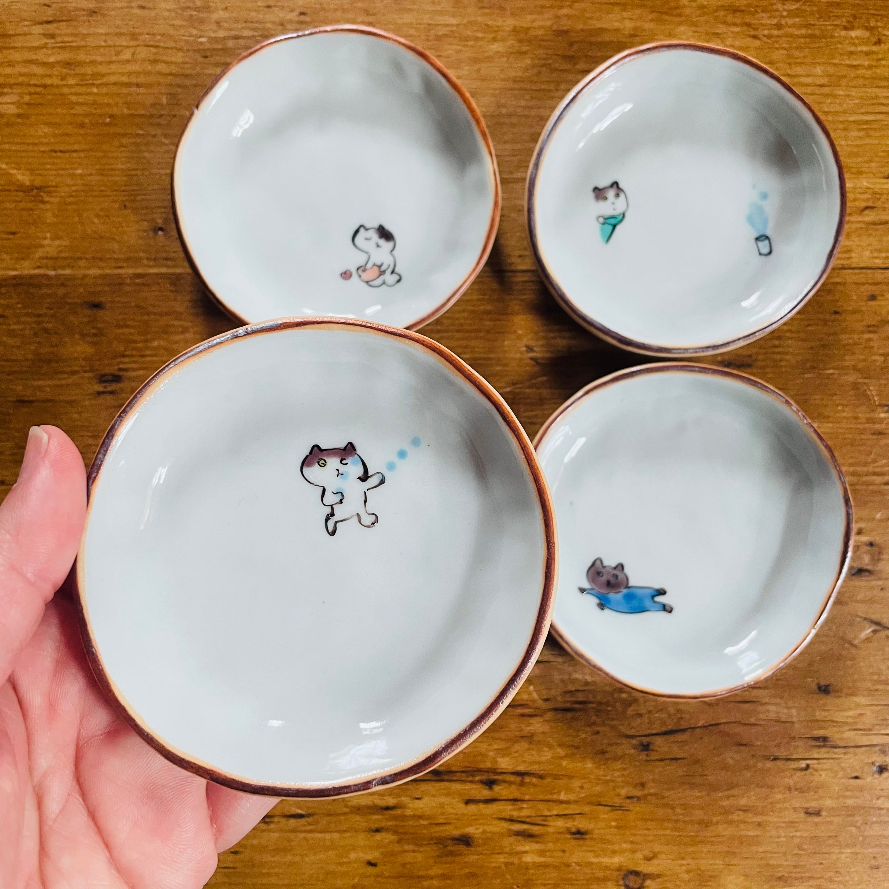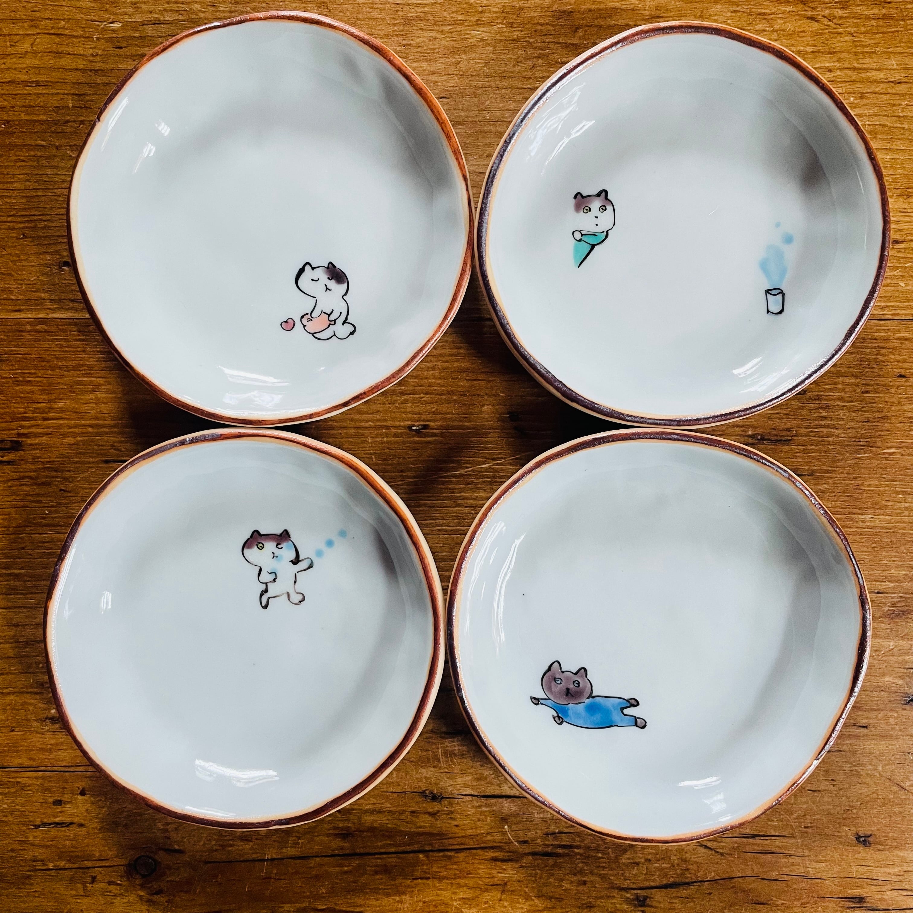 遊び心のある猫たちの豆皿