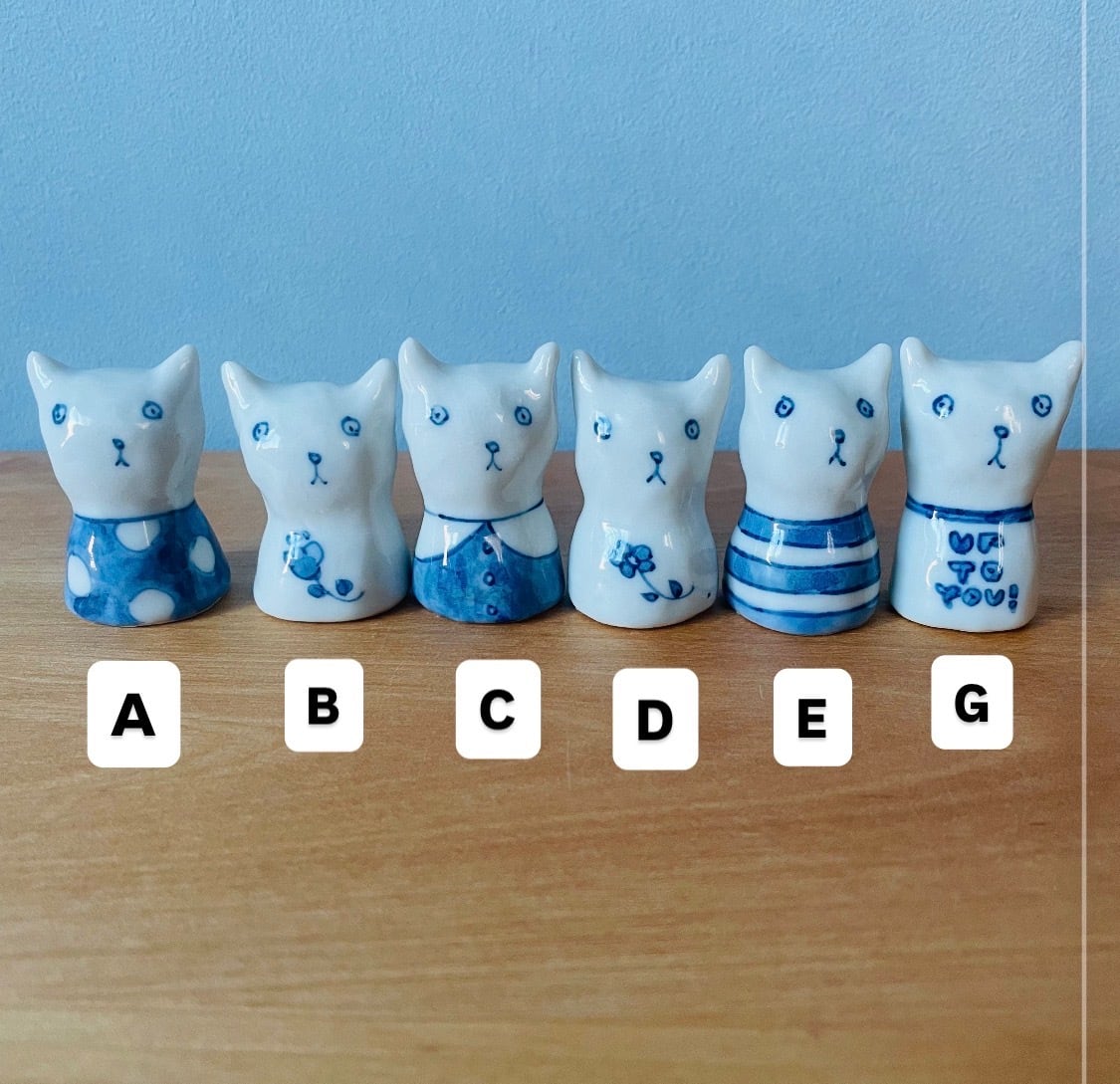 あどけない表情の小さなねこオブジェ