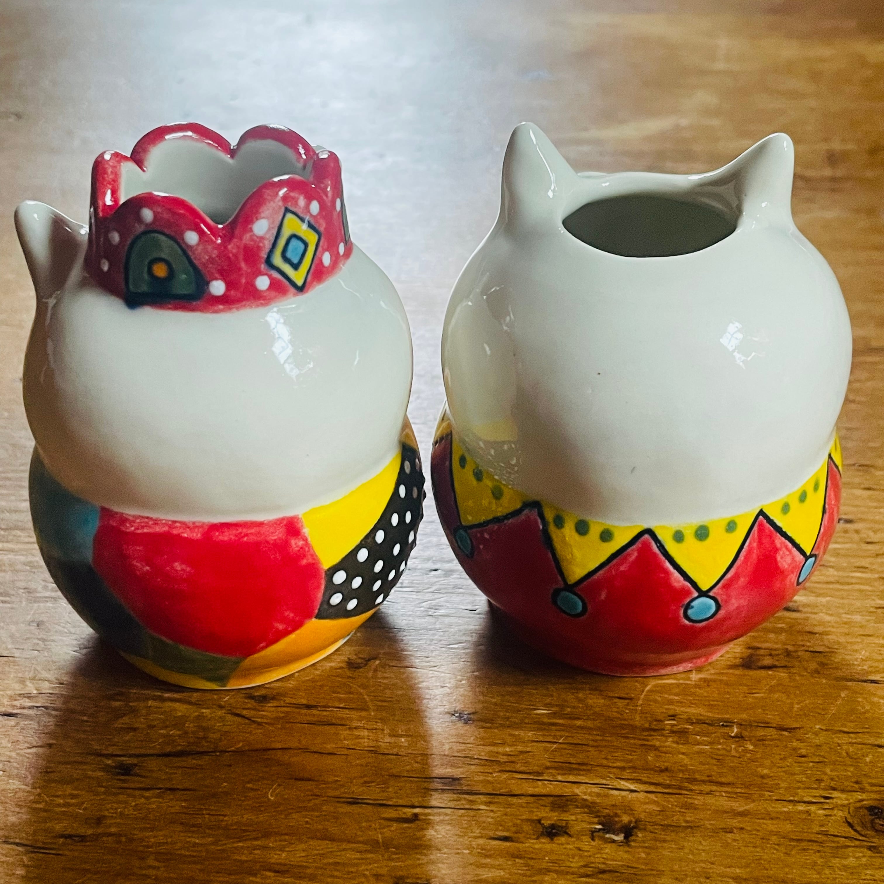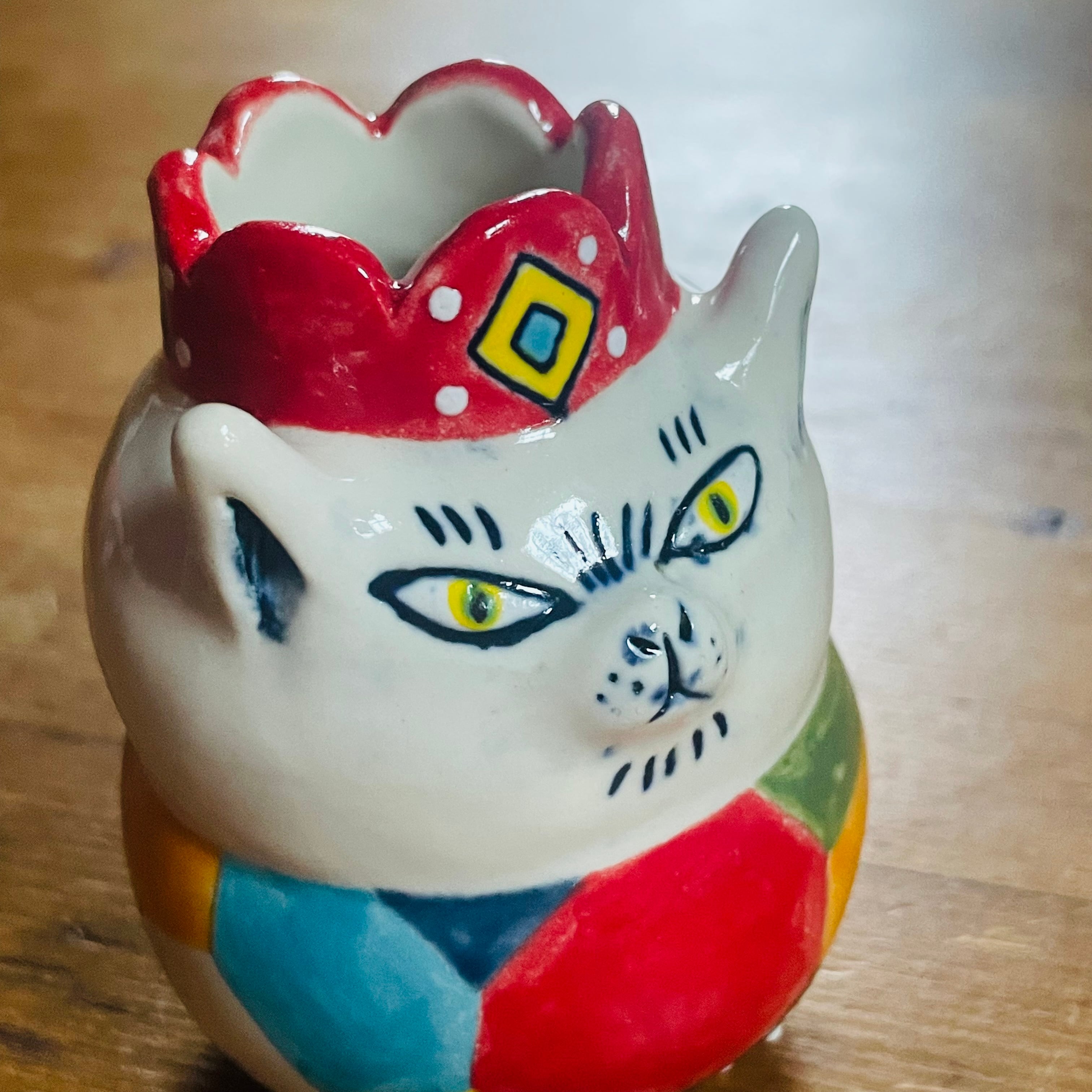 カラフルな猫の花入れを届けてくれました♪