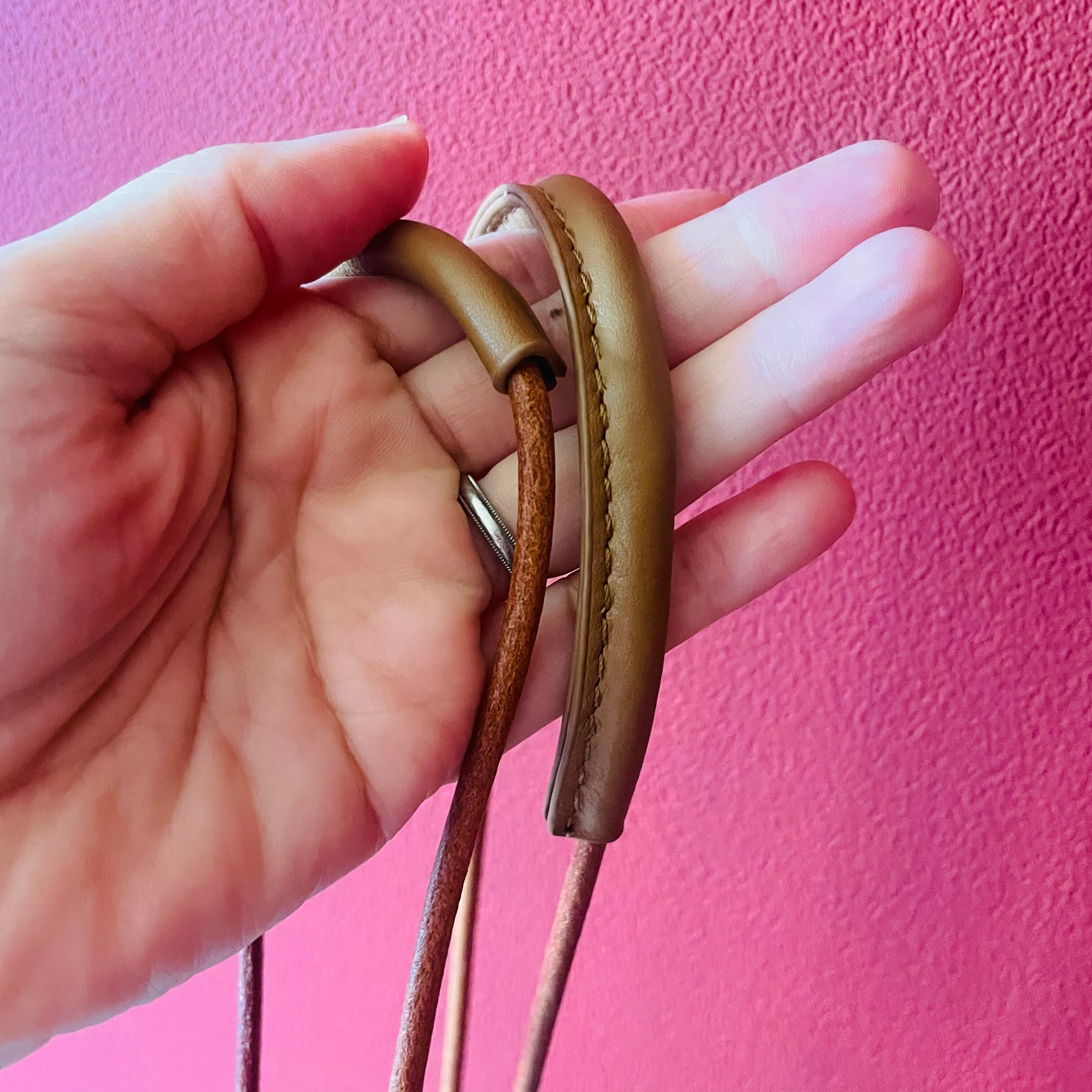 レザーの紐をキュッと絞って、