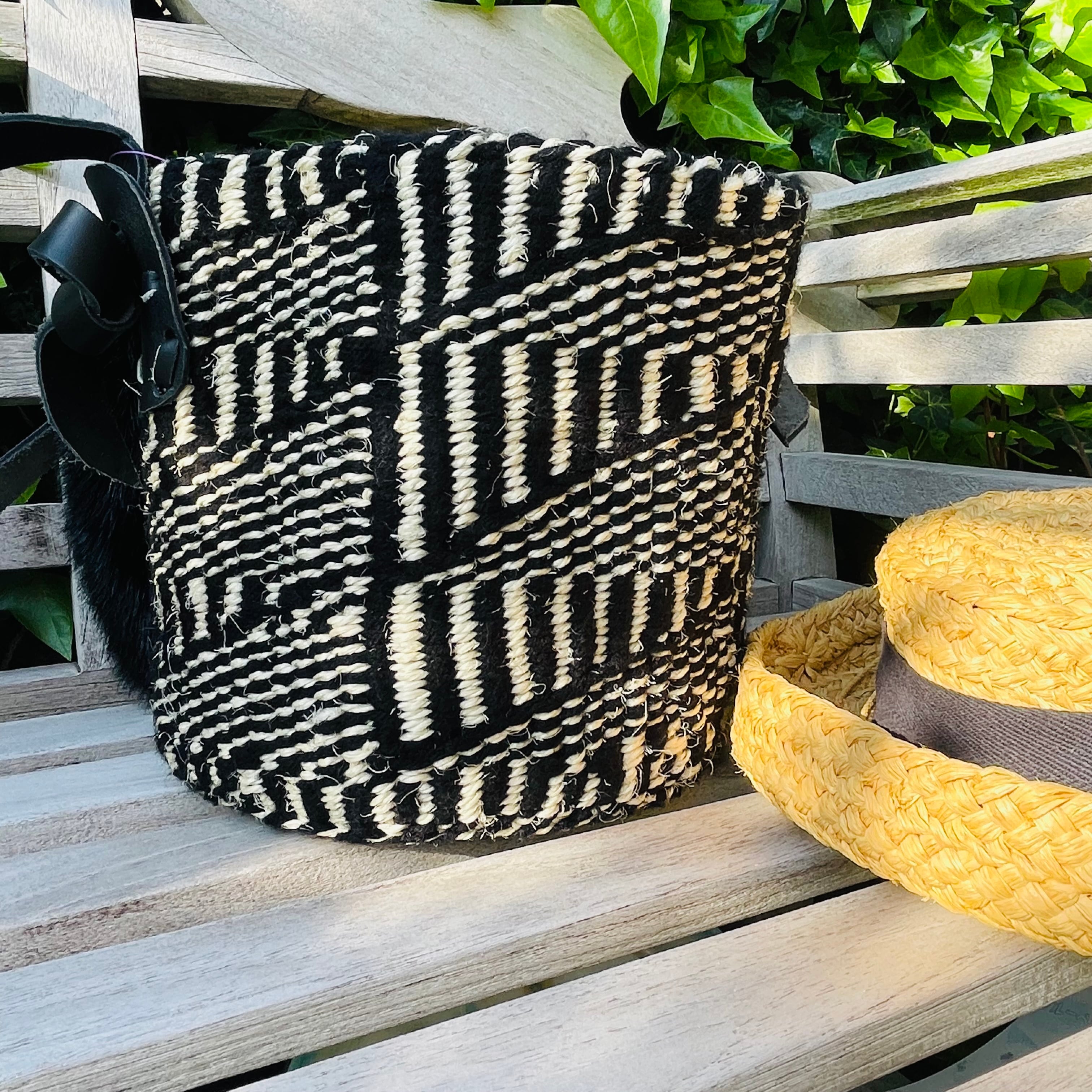たっぷり容量の黒のしましまショルダーカゴバックが届きました。