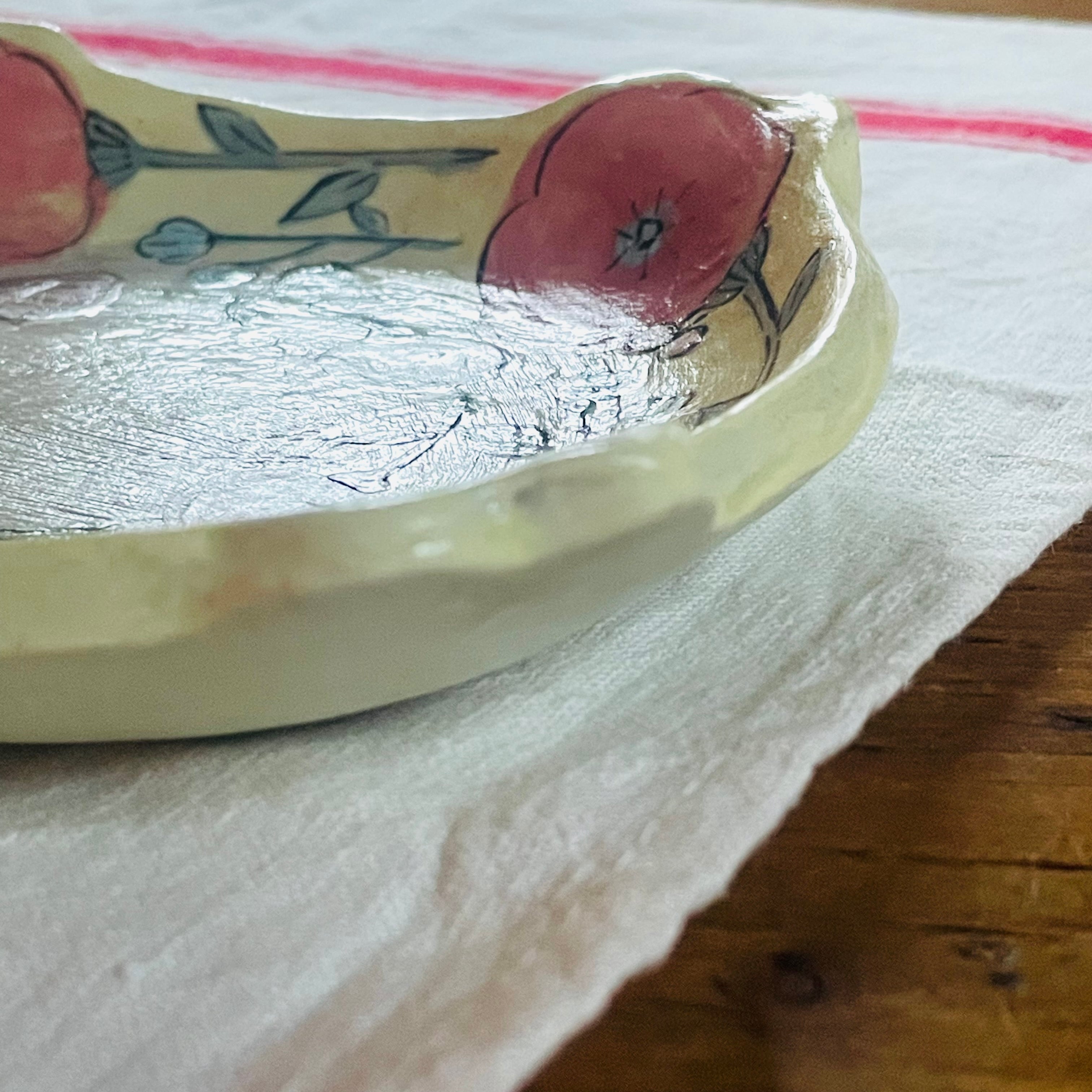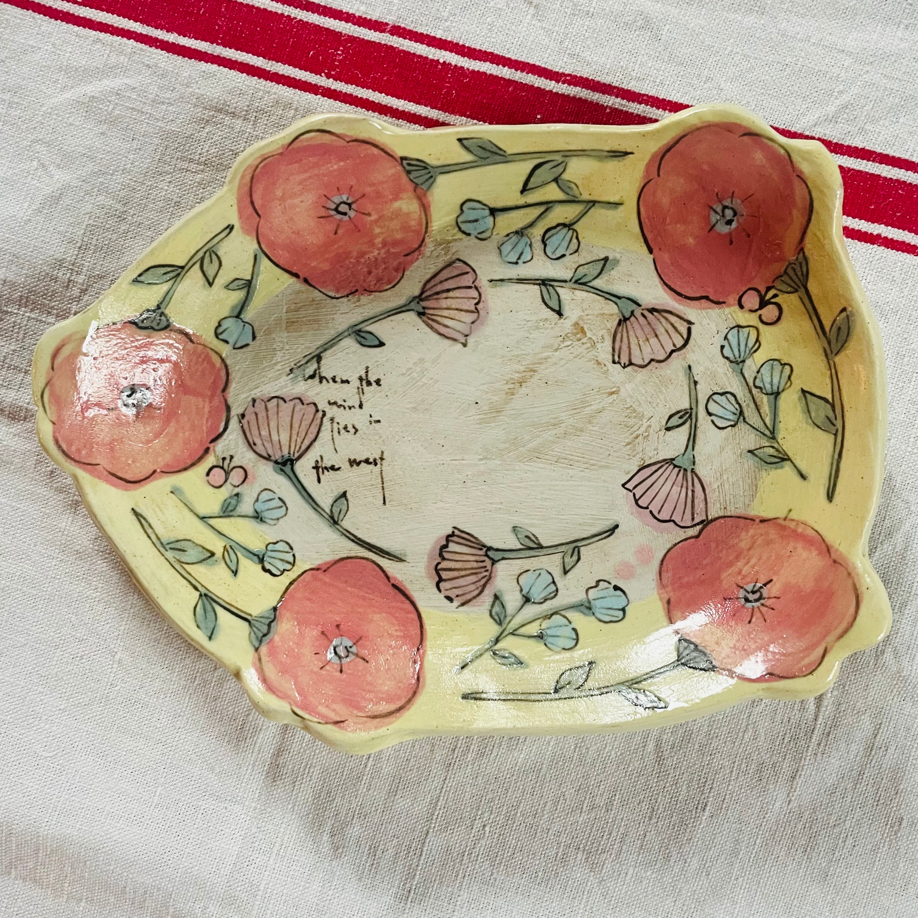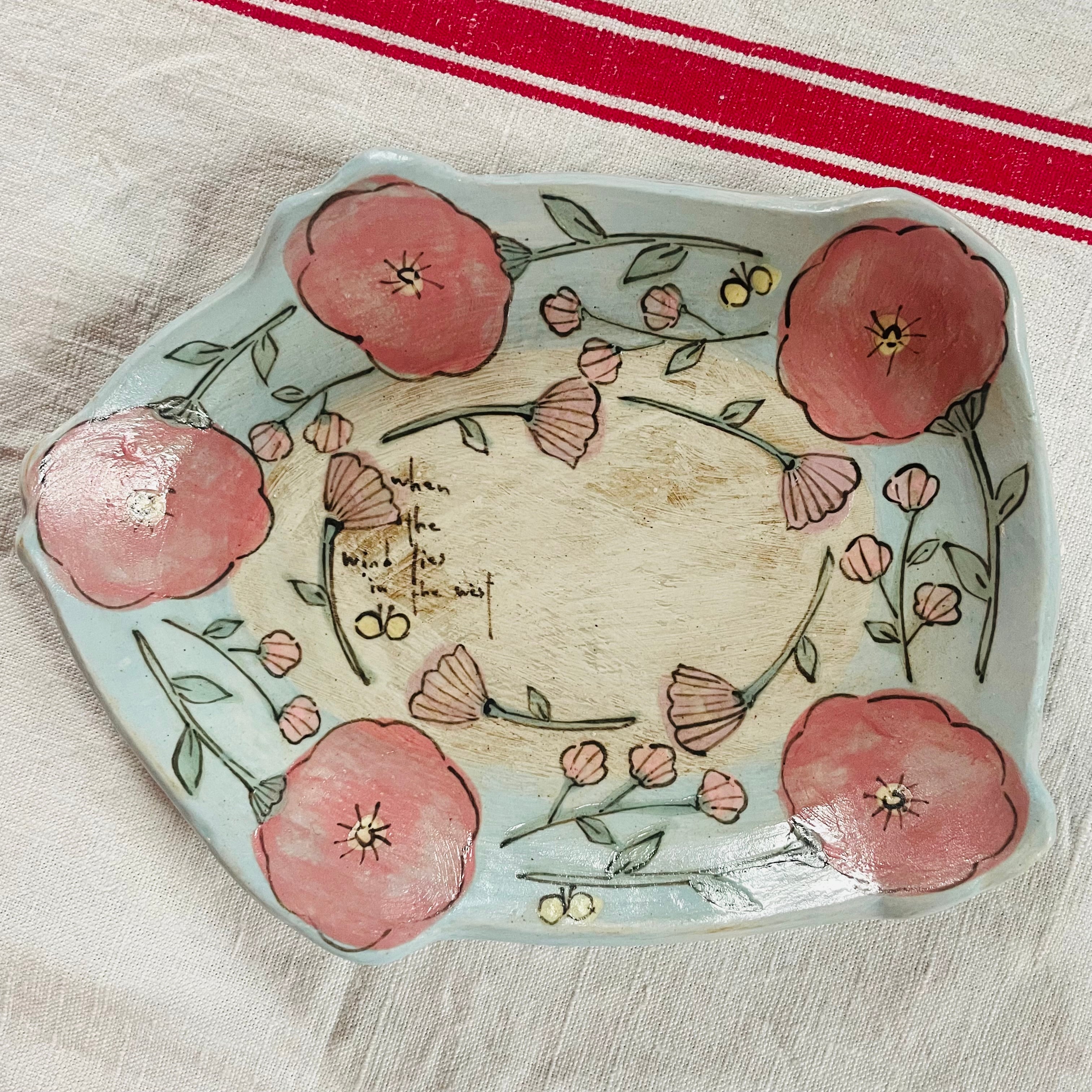 お花がぐるりとデザインされた春らしいお皿です。