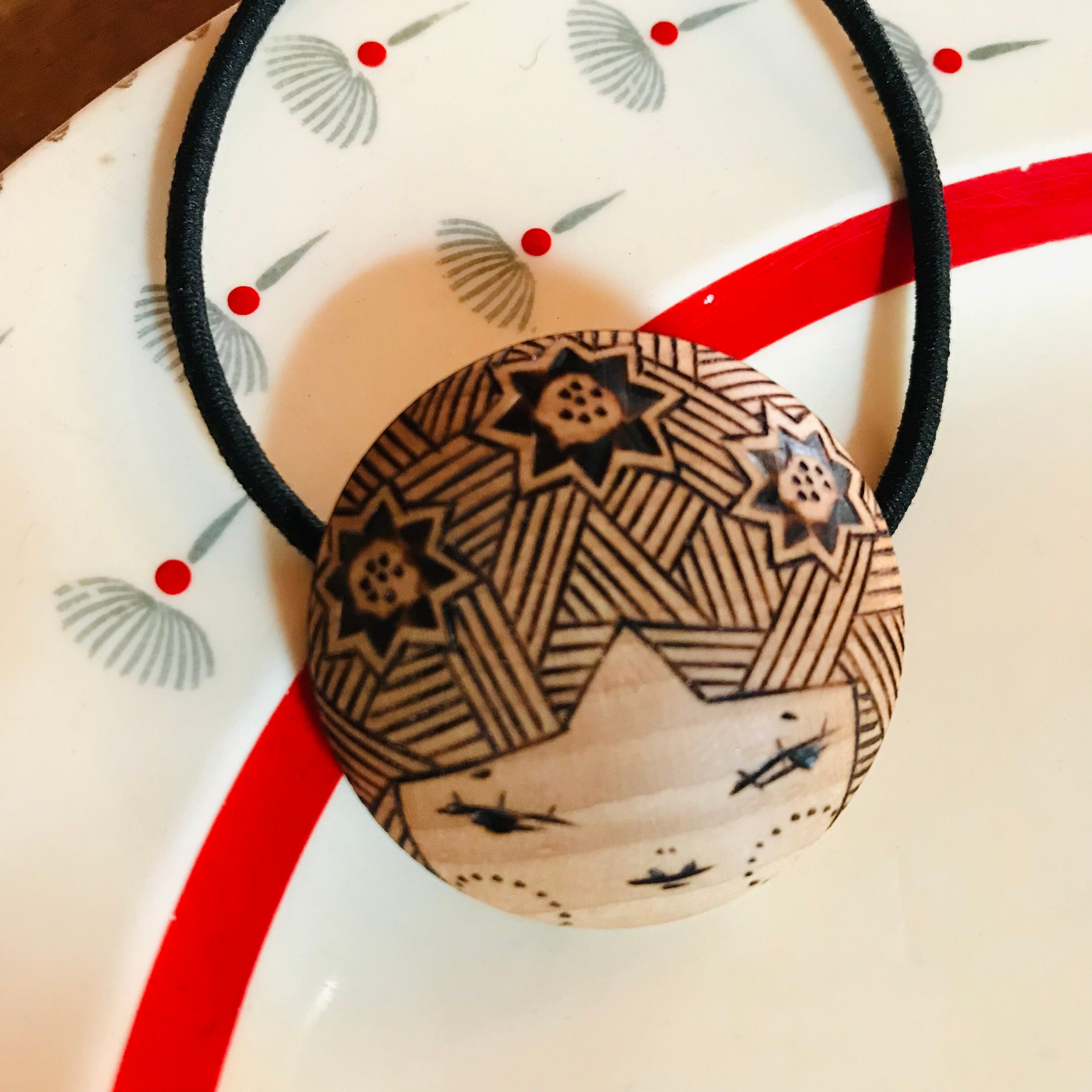 1点1点、丁寧に焦がして模様をつけて、大人っぽい表情の女の子を描いています。
