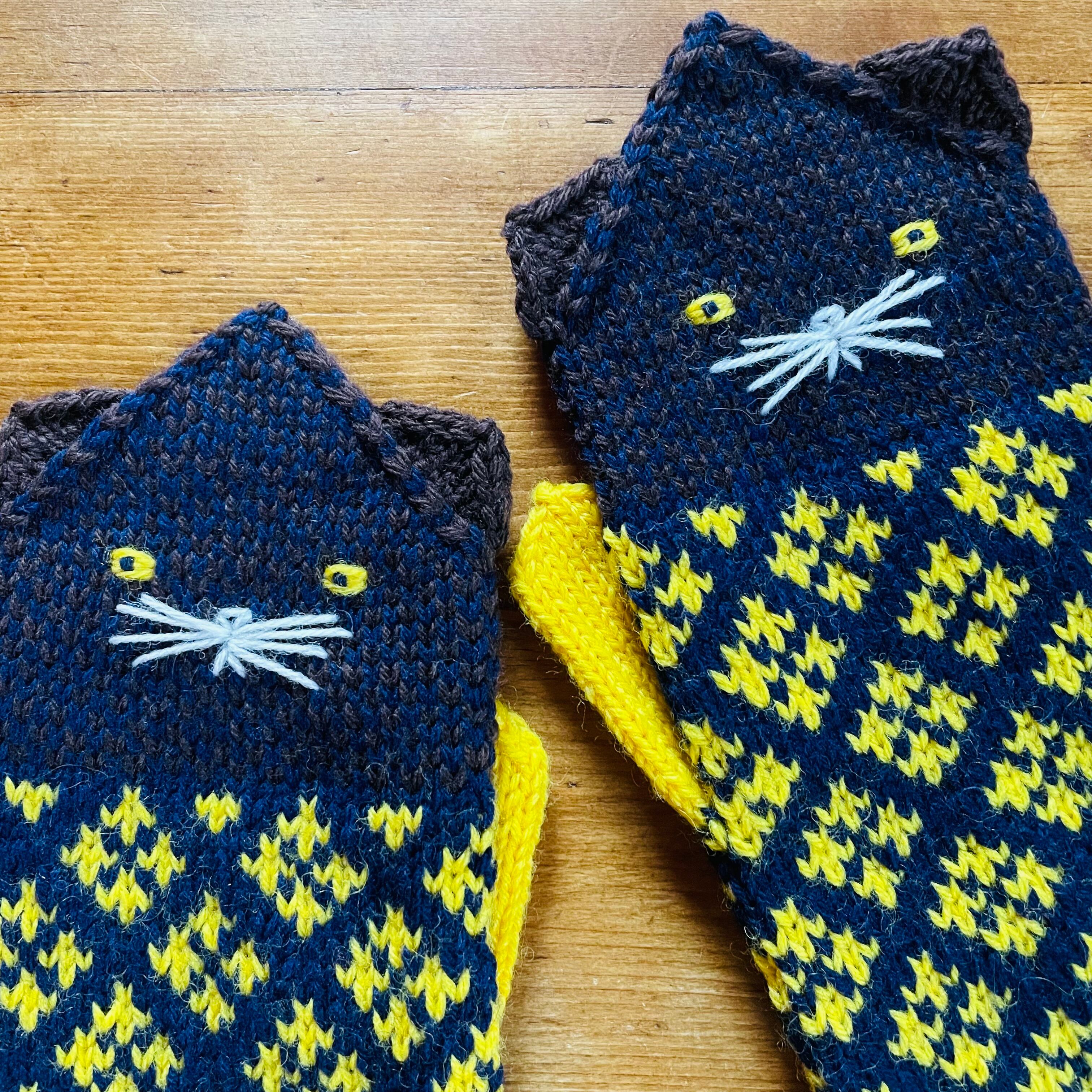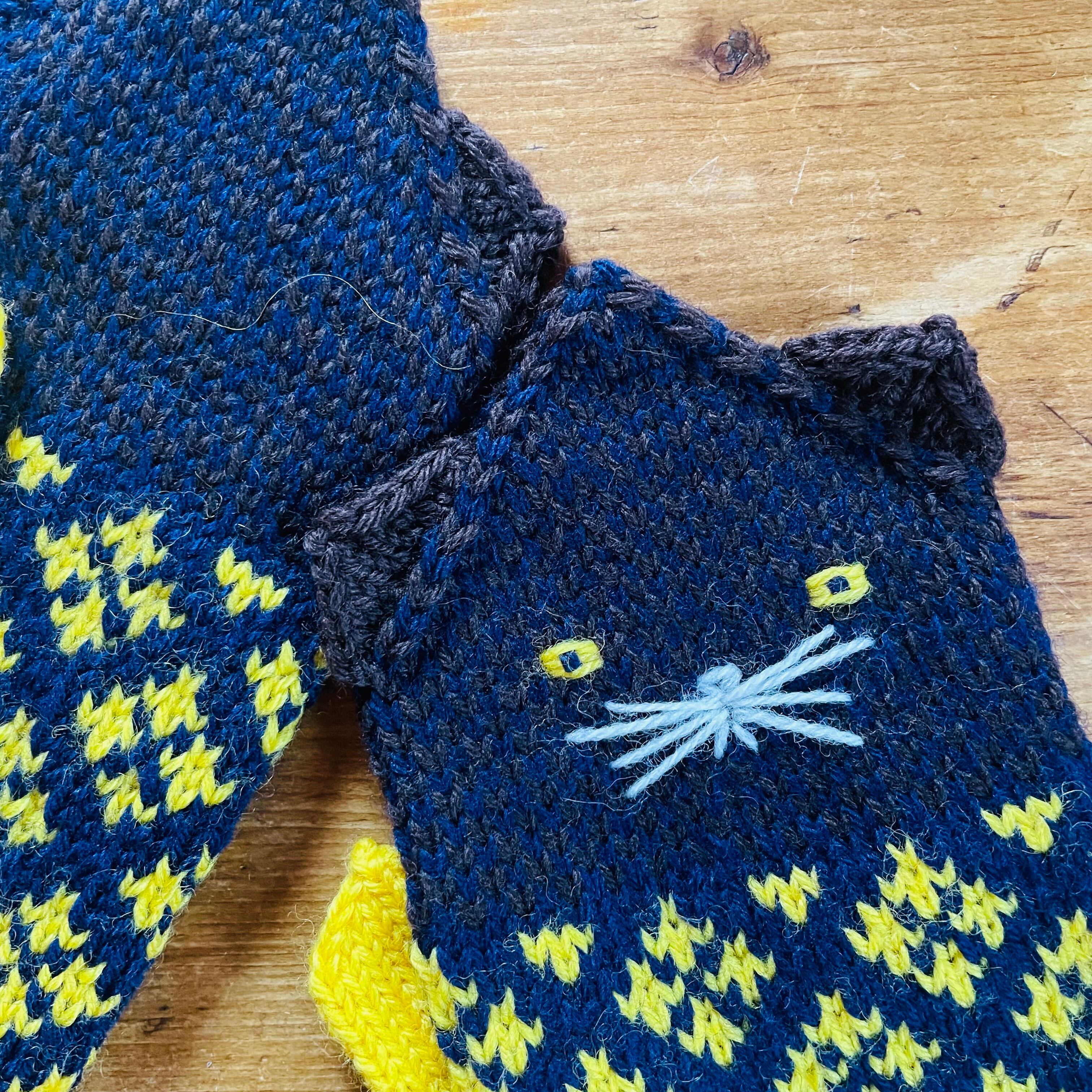 ねこの顔と北欧柄模様の可愛いミトン