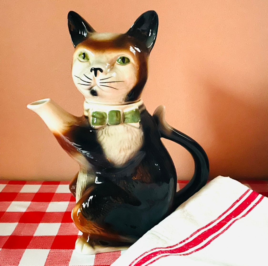 イギリスビンテージTony woodの三毛猫のティーポットです。
